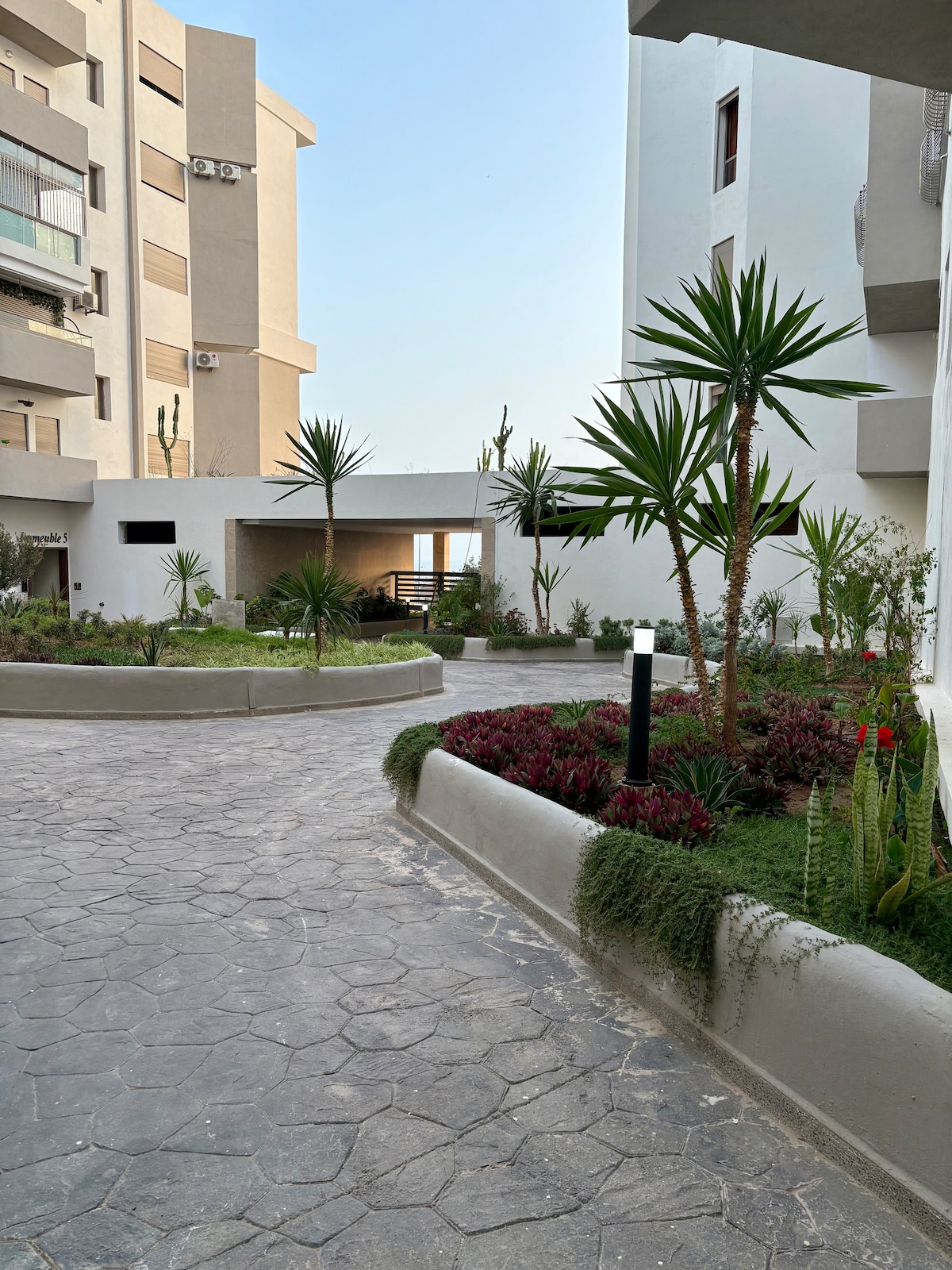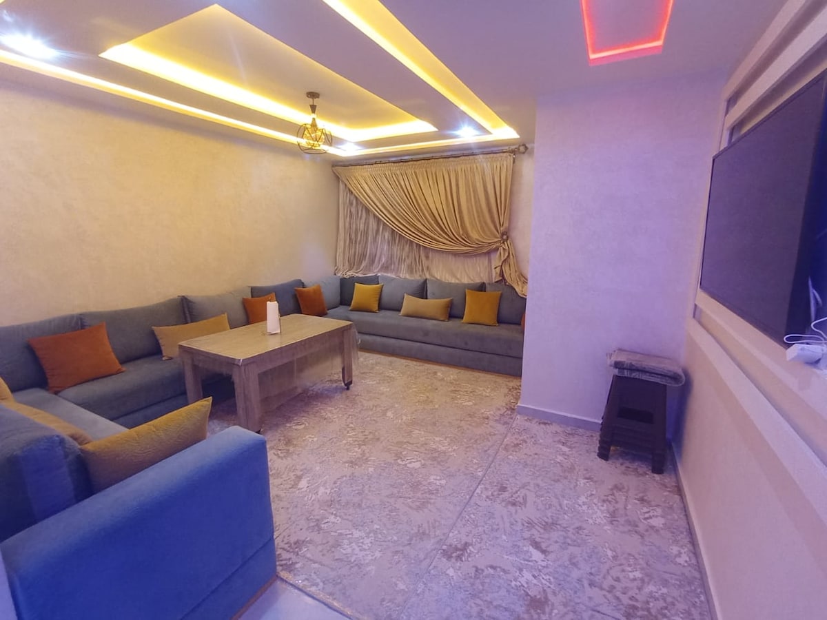 Cozy & Unique Apartment (60 m²). located in a very quiet area, in a gated community*. less than 5 minutes from Agadir Beach Marina, and 10 minutes from the famous Taghazout seaside resorts. The nearest beach is 600 m from the Apartment, accessible on foot or by car. The apartment offers easy self checkin with a smart lock This appartement is ideal to spend your holidays at any season of the year in order to discover the sunny city of Agadir and coastlines, also suitable for business stays.