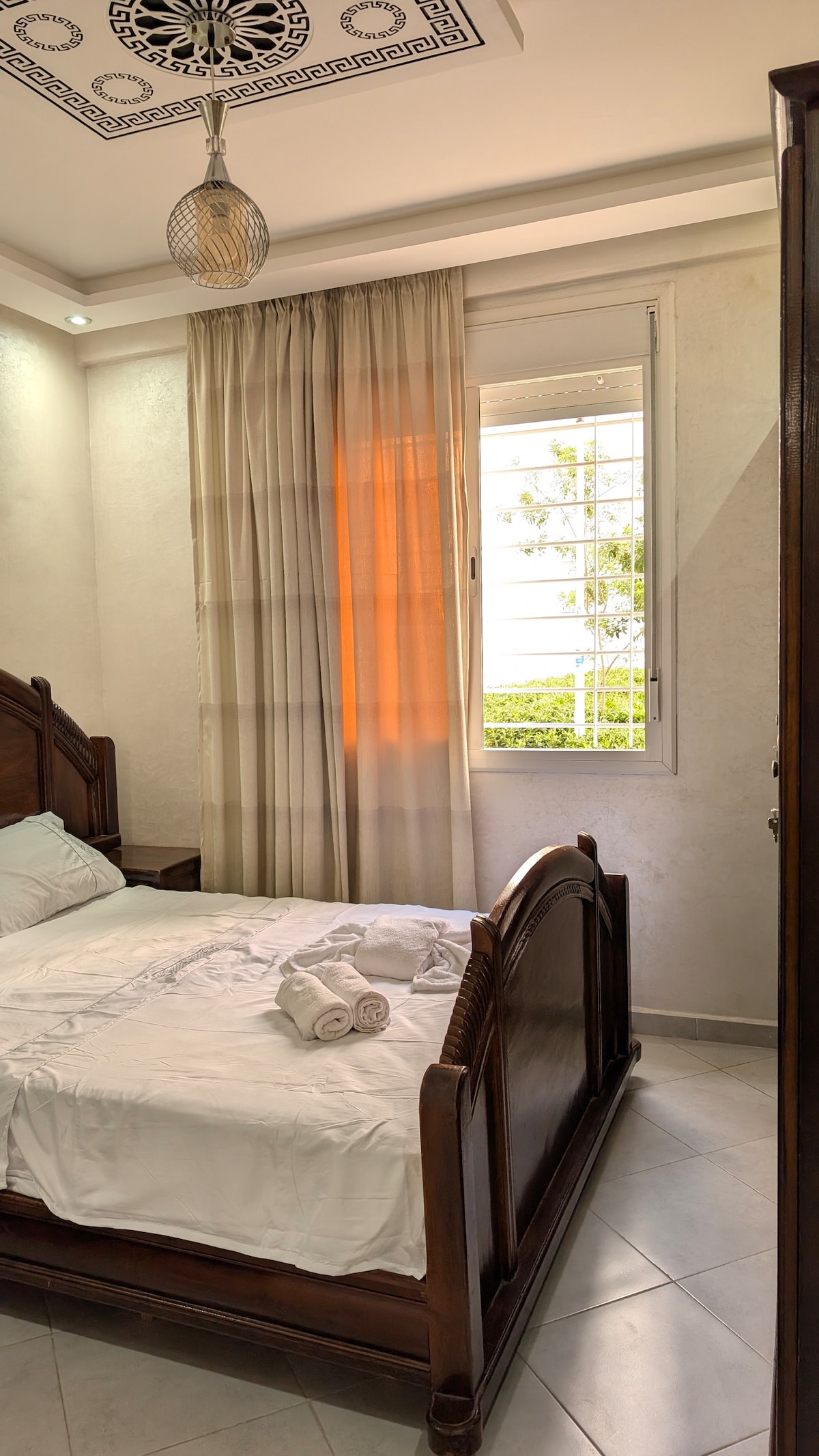 Cozy & Unique Apartment (60 m²). located in a very quiet area, in a gated community*. less than 5 minutes from Agadir Beach Marina, and 10 minutes from the famous Taghazout seaside resorts. The nearest beach is 600 m from the Apartment, accessible on foot or by car. The apartment offers easy self checkin with a smart lock This appartement is ideal to spend your holidays at any season of the year in order to discover the sunny city of Agadir and coastlines, also suitable for business stays.