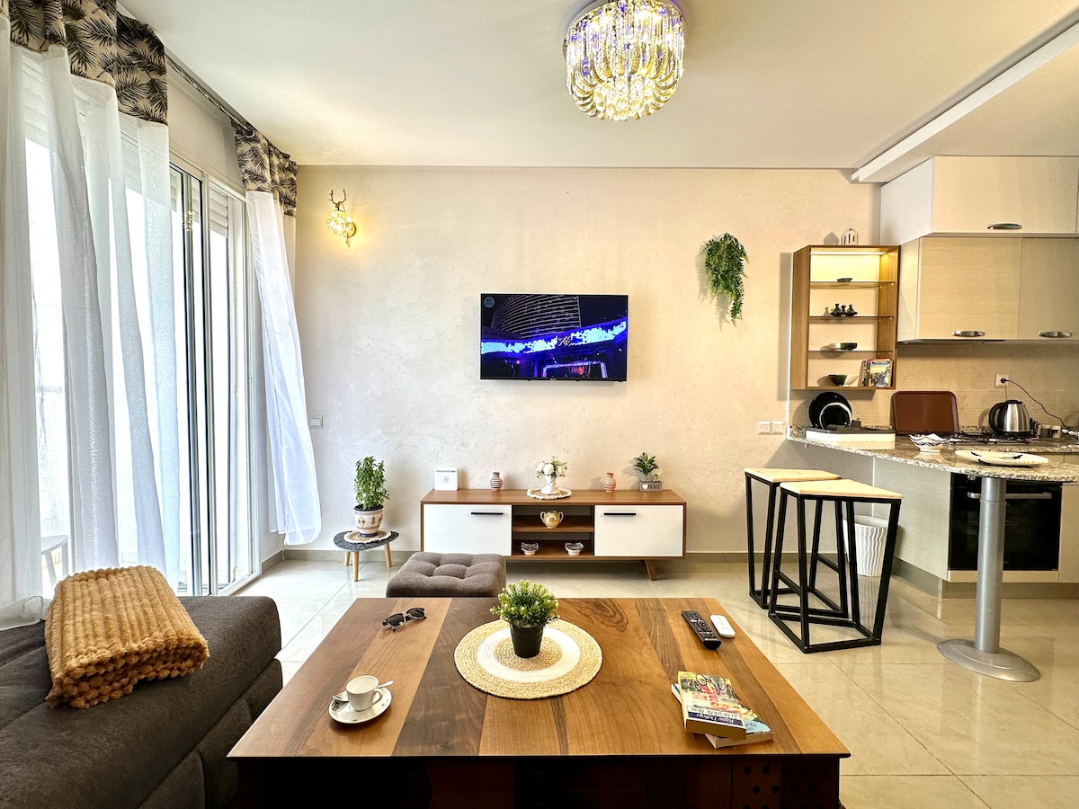 Modern apartment with ocean views, bright and spacious with a very good Wi-Fi connection that works. It consists of two bedrooms with sea views, a bathroom, a toilet, a kitchen equipped with a balcony to enjoy a view of the sunset. It also has a large living room with sea views with four sofas and a large flat screen TV and air conditioning. Overall, it is a cozy and comfortable place, ideal for enjoying