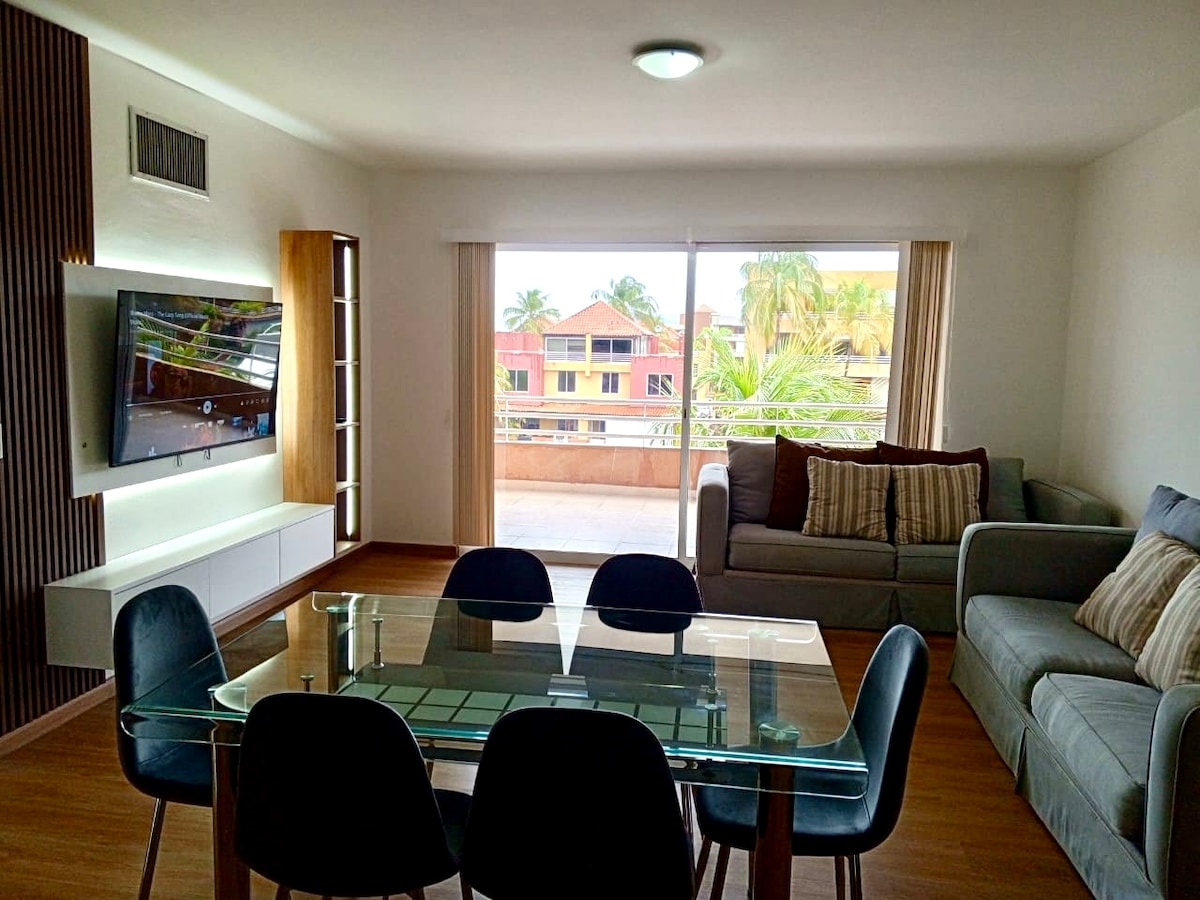 Wonderful entire accommodation apartment, quiet and relaxing in the exclusive area of the El Morro Tourist Complex, overlooking the navigation channels and the pool, with access to the islands of the Mochima National Park through the channels. Close to Playa Los Canales and Playa Lido, as well as restaurants, shopping centers, gyms, soccer fields, golf and paddle tennis.