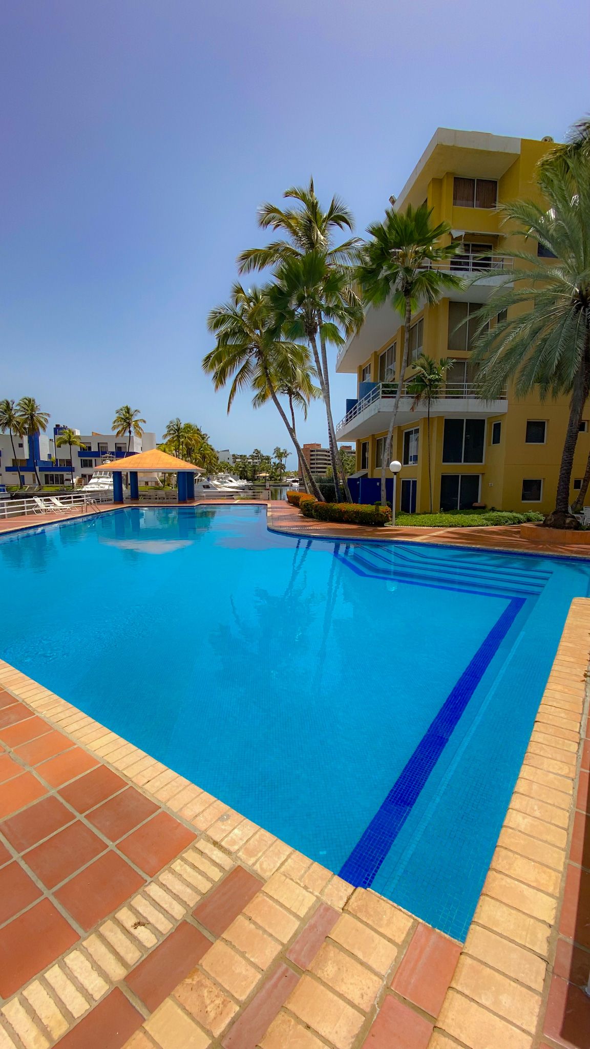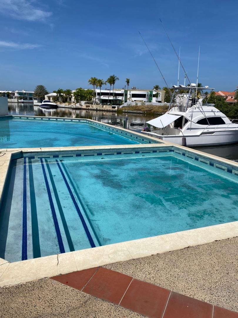 Es un bello Pent House (PH), con aire AA en todas las áreas, WiFi, Smart TV; Neflix YTube, o streaming. Piscina de adultos y niños, con estacionamiento techado, y para lancha en el canal principal, área de caminar con hermosa vista. Ubicación privilegiada, cerca a C.C. Plaza mayor y a las principales avenidas, restaurantes y playas de la ciudad, con vigilancia las 24 horas es seguro para visita de trabajo o turismo. Ubicado en un 3er piso con ascensor y tanque de reserva de agua.