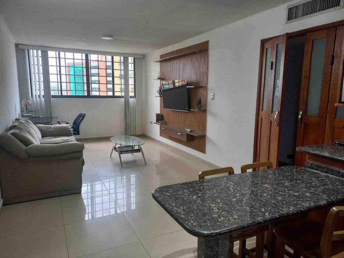 Tranquilo y espacioso apartamento, ubicado estratégicamente cerca del aeropuerto. Además, estarás justo al frente de los centros comerciales principales de la ciudad, a solo unos pasos del Hotel Eurobuilding. Contamos con internet fibra óptica 60 mbps de descarga y smart TV. ¡Todos son bienvenidos! Disfruta de una ubicación conveniente para explorar la ciudad. ¡Reserva ahora para una estancia inolvidable!
