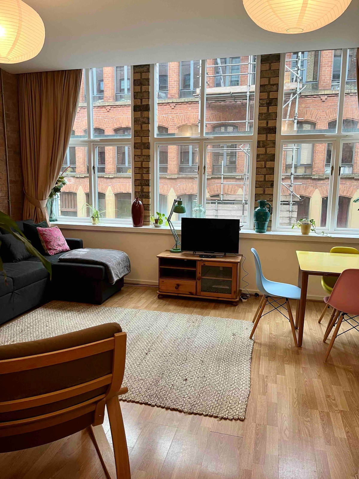 Large, light and airy mill conversion in the Northern Quarter, a vibrant bustling, part of the city. With cafes, vintage shopping, galleries, restaurants, bars galore on the doorstep. Being very centrally located in such a popular area, it is important to note that it is noisy at times, particularly Friday & Saturday evenings. If you like peace and quiet, this isn't for you.