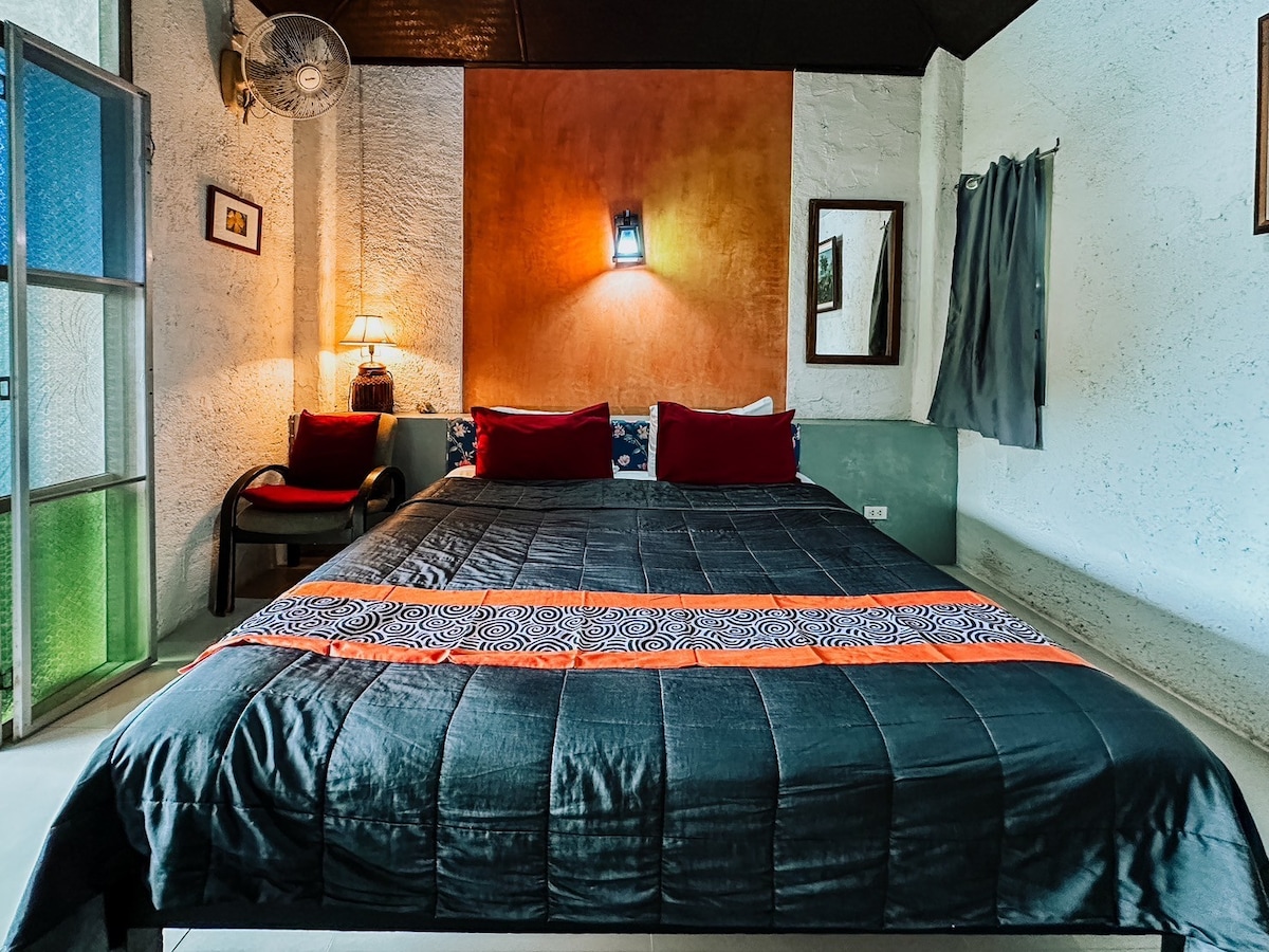 แบบ ลอฟท์ ปูนเปลือย ตั้งอยู่ใกล้ภูเขา บรรยากาศเงียบ สงบท่ามกลางธรรมชาติ เหมาะสำหรับทุกคนที่ต้องการหลบหนีความวุ่นวาย รอบบ้าน ปลูก พืช สวนครัวแบบ อินทรีย์ เก็บปรุงอาหารได้ มี 2 ห้องนอน 2 ห้องน้ำ เตียงใหญ่ เสริมฟูกนอนบนพื้นได้ และ 1 ห้อง นั่งเล่น ปรับเป็นห้องนอนและเสริมฟูกนอนพื้นได้ อีกทั้งห้องนั่งเล่นด้านนอกและที่รับประทานอาหาร มี 1 ห้องครัวให้บริการ สนามหญ้ากว้าง และสวนรอบบริเวณบ้าน 15 ไร่ จัดกิจกรรมได้ เราพร้อมบริการ จัดเมนูอาหารได้ตามต้องการหลายรูปแบบ หรืออาหารใต้แท้