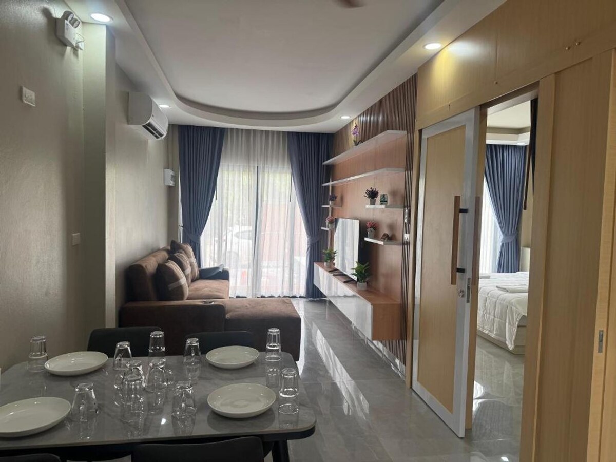 🌿 Spacious 1BR Suite in Ao Nang | King Bed + Sofa Bed | Garden View 🌿 Welcome to your tropical retreat in Ao Nang — just a short walk from the beach, shops, and local eateries. This 45m² private suite offers comfort and flexibility for up to 3 guests, featuring a king-sized bed, a sofa bed with full linen set, and everything you need for a relaxing stay. Separate living room, private bathroom, kitchenette, outdoor seating, air conditioning (bedroom), fan (sofa bed), fast Wi-Fi and work desk.