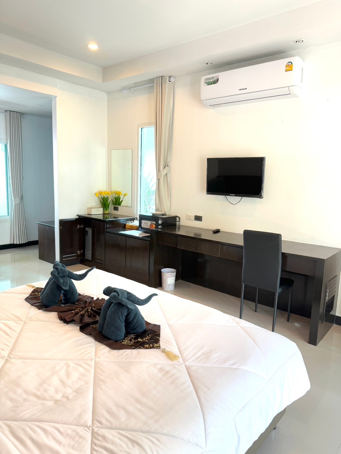 Nous vous proposons un logement de 50 m2 au deuxième étage de notre maison qui se trouve au pied de la montagne< Din daeng doi> depuis la terrasse vous découvrirez une vue panoramique sur les montagne ainsi que la mer au loin < Ko yao noi>