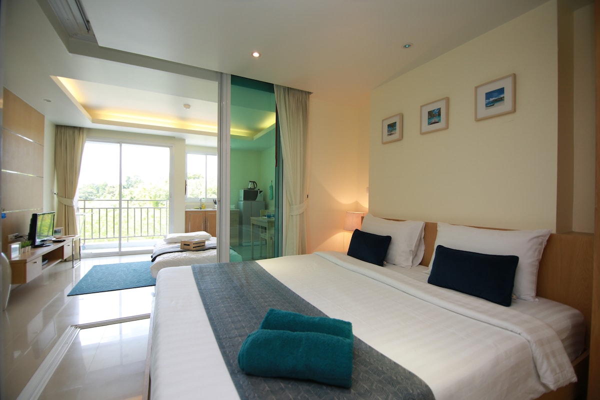 Elegant 24 sqm Studio with Stunning Views & Ideal Location This cozy 24 sqm studio features a queen bed, ample storage, and panoramic windows with breathtaking views. • Kodak Kitchen (renowned Thai food) downstairs • 1 mins to Khunsenk Muay Thai • 5 mins to the beach • 18 mins to the night market • Steps from vibrant beach nightlife The perfect blend of comfort, style, and city adventure awaits!