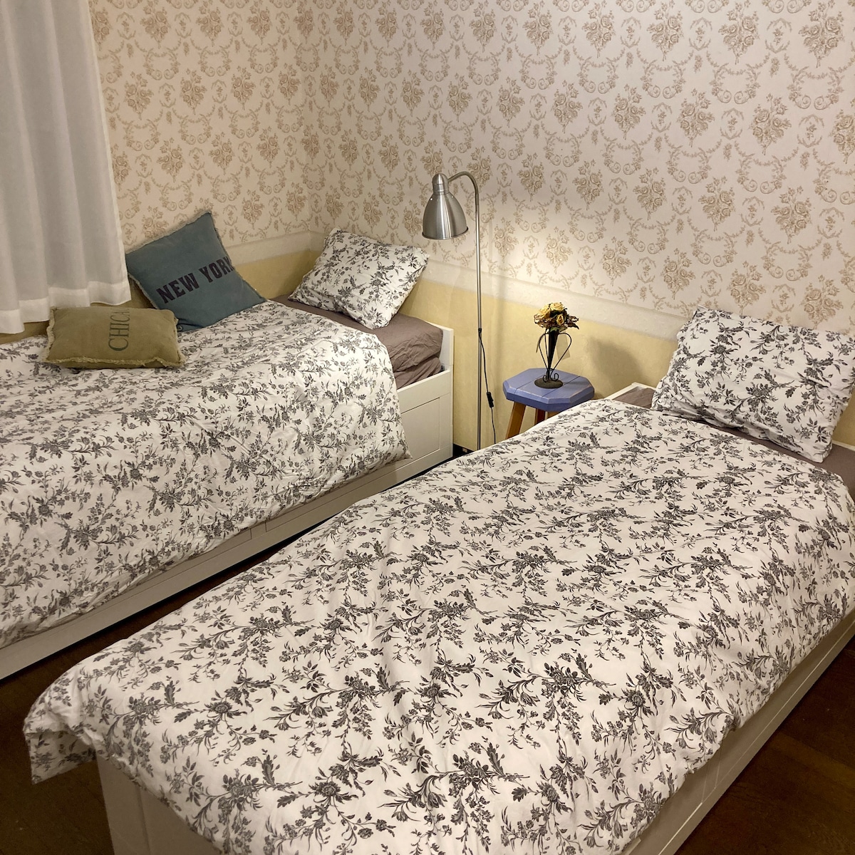 1階のお庭に面したお部屋です。ベッドが2台です。八戸の繁華街から歩いて10分ぐらいの距離です。共用のリビングルームもぜひお使いください。ペットもOKです。暖かいホストファミリーと楽しいひと時を過ごせますので、ひとり旅にも最適です! A room in the 1st floor have two beds . The room is facing a nice garden. We're welcome to the shared living room to chat. The guest house is near Hon-hachinohe station and walking distance from downtown. Accept animals! You can enjoy time with warm host family if you travel alone.