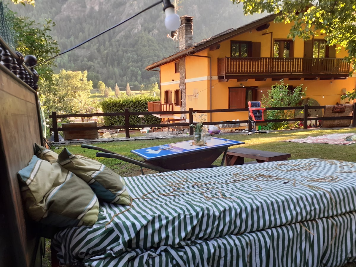 Caratteristico Chalet rustico di recente ristrutturazione disposto su un unico piano a terra,arredamento tipico montano.Zona tranquilla con vista sulle montagne e parcheggio privato con area relax esterna, a 1000 metri di altitudine,a due passi dal centro storico,dall'alimentari,dal bar/ristorante,posta,ampio parcheggio comunale e parco giochi.A 8minuti da Brusson,17minuti dalle piste da sci di Palasinaz,20 minuti da Champoluc e20minuti dalle piste da sci di Antagnod. Siamo lieti di accogliervi.