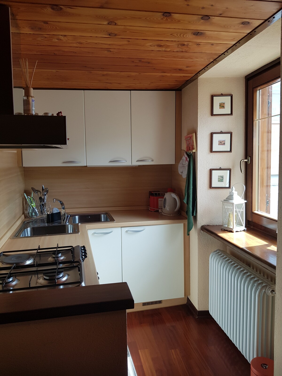 Cosy and warm apartment in Aosta, penultimate floor, lift, bright, large south-facing balcony overlooking the mountains in a quiet setting surrounded by a communal garden. Perfect for visiting Aosta or starting point for surrounding valleys (7 minutes by car for the Aosta-Pila cable car). Organic supermarket less than 80 meters and pizzeria-restaurant less than 50 m. Consisting of bedroom, bathroom, equipped kitchen, living room with sofa bed, balcony.