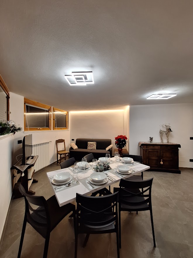 Bilocale situato al 1°piano di una graziosa casa indipendente di montagna. Cucina dotata di piano cottura a gas, frigo, forno, lavastoviglie e tutte le stoviglie necessarie per mangiare e cucinare. Zona giorno dotata di tv led e divano letto matrimoniale. Camera da letto dotata di letto matrimoniale e armadio. Bagno dotato di doccia e lavatrice Possibilità di prenotare tutta la casa (bilocale+monolocale) Su richiesta sono disponibili gratuitamente: culla per neonati (0-3anni) e seggiolone pappa