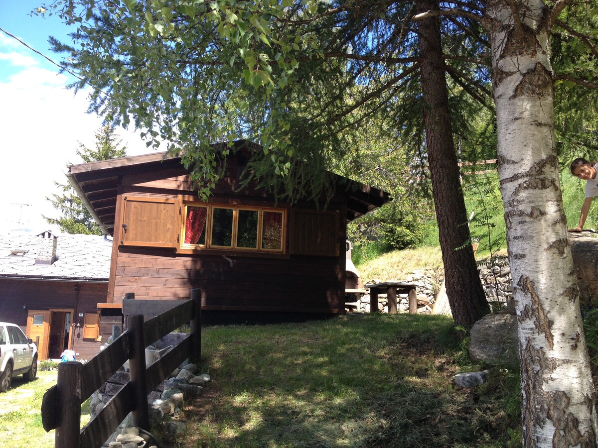 A 7 minuti da Pila e a solo 700 mt dalla cabinovia Aosta-Pila (stazione di Les Fleurs) affitto un piccolo chalet indipendente con una splendida vista dal Monte Bianco al Cervino, punto di partenza perfetto per gli amanti dello sci, trekking, MTB.
