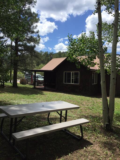 Take a step back in time at our historic cabin on Main Street along the Greer Village Walkway. Remodeled and upgraded with nostalgic pieces from the past mixed w/ modern amenities make this cabin a "Village Sweetheart". Unplug & unwind under towering aspen trees. Sip a beverage on the covered tiny porch or enjoy a picnic at the aspen grove picnic table. Lots of room on the property to wander & relax. Bring your hammock & binoculars to enjoy the wildlife passing through daily. Pretty windows, pr