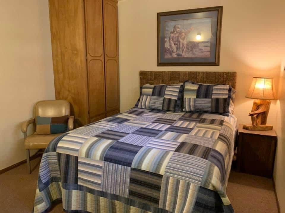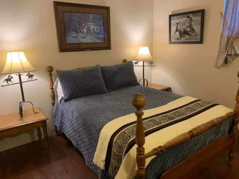 The 2 bedroom Vaquero Suite (queen bed + twin + bunk bed) is in our Bunkhouse, which is a large 2000 sf cabin/building that has 6 individual rooms, each with a private bathroom. There is a common lounge area in the building that has a TV, fridge, hot plate, microwave and coffee station. There is a BBQ outside the building. The Bunkhouse has central heating and other ammenities such as wifi, linens, towels, soap/shampoo and hairdryers. It has a ramp into the building on the side entrance.