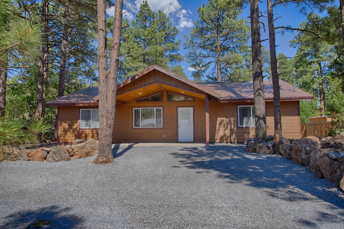 This cozy 3 bedroom 3 bed is located in the heart of Pinetop, Arizona. It is walking distance to the national forest to go for a hike and a look at wildlife. The house is next to a corral where horses and goats call home. Groceries are around the corner for those that want to cook and if you want to go out for a drink or a nice steak, Charlie Clark steak house is walking distance to you. Sunrise Ski resort is only 30 miles away.