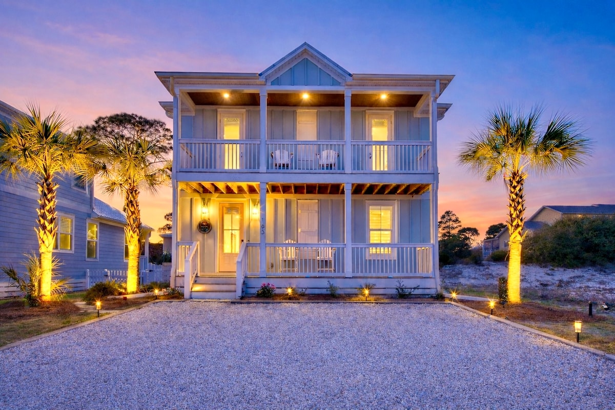 ⭐️Luxury 4-bedroom Beach Home ⭐️ Sleeps 12 in Windmark Beach ⭐️ Heated Pool Oct 1-Apr 30 ⭐️ 6 Seat Golf Cart ⭐️ Steps to Beach Access ⭐️Pet Friendly You’ll be steps to the luxurious community pool where you can relax overlooking the Gulf. You can walk to the beach in mins from the home to swim in the warm waters of the gulf or relax in the sun.Take a golf cart cruise to the nearby Village Center to grab a bite to eat.End your day relaxing in the screened-in porches or fire pit outdoor space.