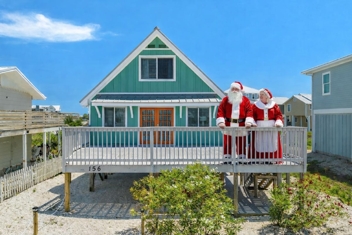 Walk to restaurant/bar, Mango Marley's, across street. Coffee, ice-cream & shopping 2 minute walk End unit on beach side of Hwy 98 - easy/safe short walk to beach Extra parking for vehicles/boat 2 King Suite bedrooms, one with 2 twin beds, both with mounted TV 3 Back Decks have beach views and sunsets Quality Sleeper Sofa Washer & Dryer 70" living room TV Wifi Outdoor shower Grill Gas Firepit Beach/Fishing Cart to make short walk to the beach easy Beach Chairs Bikes No Pets & No Smoking