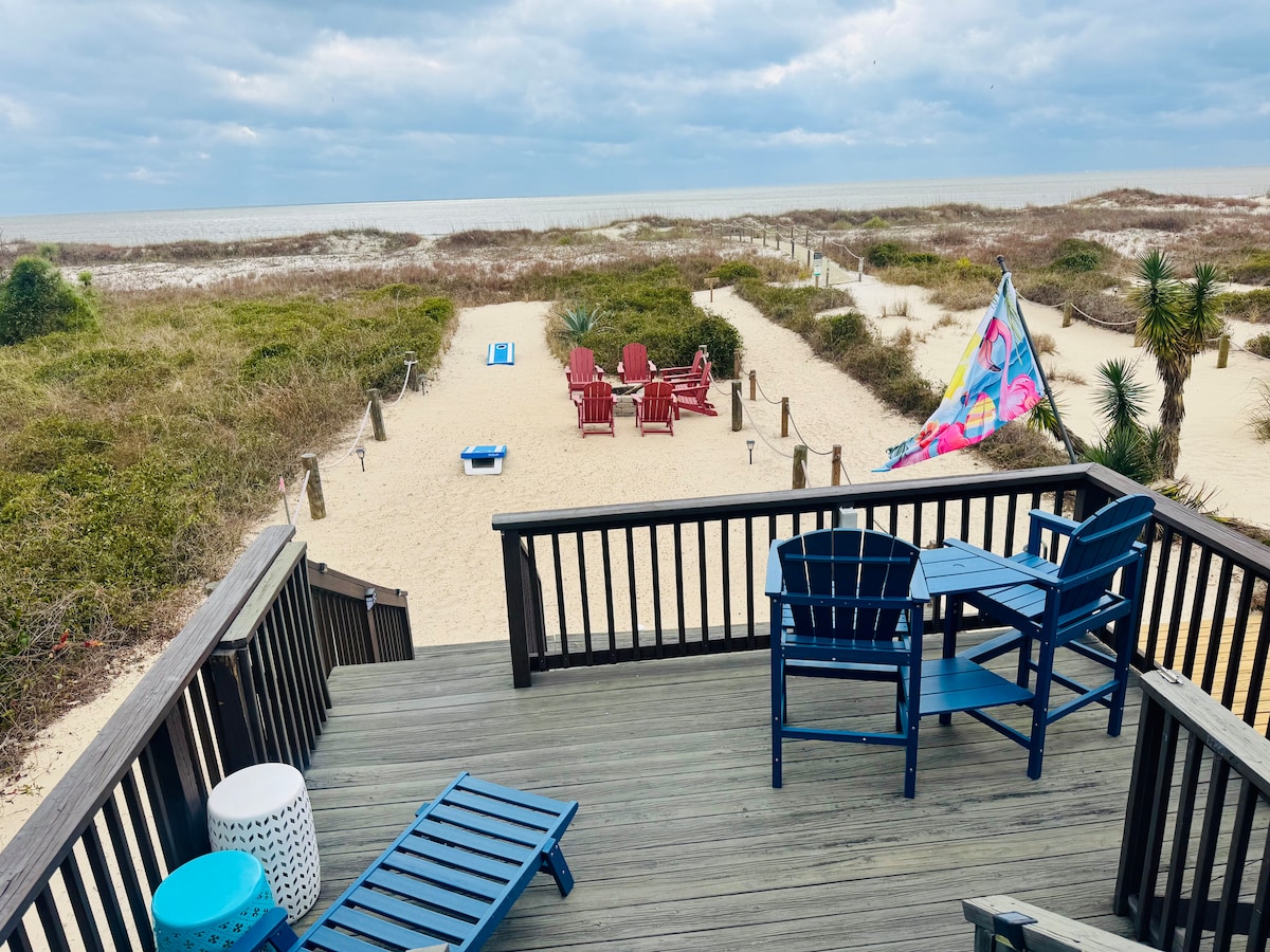 New Beach Front Listing! Ideal location directly on The Gulf close to "The Cape", Port St Joe, Indian Pass, & Apalachicola! Stylishly renovated space for your family to enjoy. 2 bedrooms and a loft area with a cute spiral staircase adding lots of unique character. Enjoy your beach sunrise/sunset, endulge in a beach side fire and catch the views of horses walking on the shoreline. Partake in the outdoor and indoor games & activities provided by your hosts. Just pack your bags & enjoy paradise!