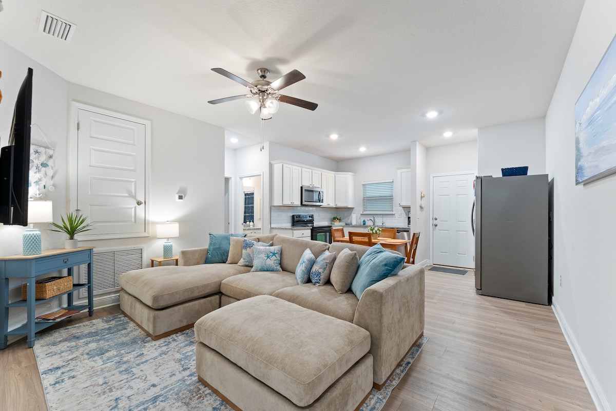 We are pet friendly !! Your family will be close to everything when you stay at this centrally-located Villa. All you need to bring is swim suits, beach chairs and sand buckets ! Just minutes to the beaches, and walking distance to downtown Vaulted ceilings and open floor plan. TV's in every room, fully stocked kitchen complete with the blender and a Keurig for the morning after ! Open covered front and rear porch, complemented with a camp style BBQ grill in the completely fenced in back yard.