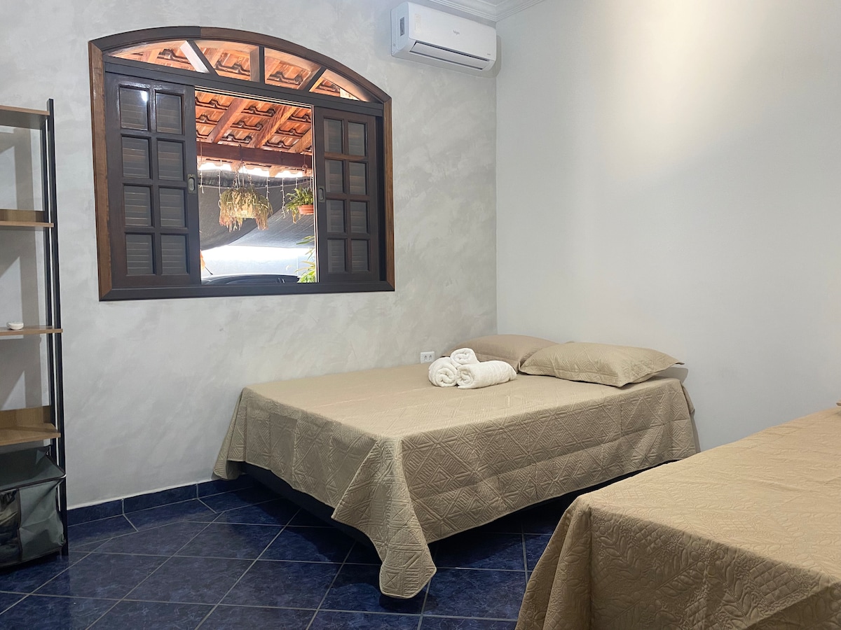 Casa para até 12 hospedes. 03 minutos de carro da Basílica Nacional de Nossa Senhora Aparecida e do Parwue 3 Pescadores. Casa com tvs Smart e Wi-Fi Fechadura eletrônica. Podendo chegar e sair sem precisar de chaves. Com roupas de cama e banho. E TB com 2 cobertores de microfibras em cada cama. Casa bem plana, silenciosa segura e bem reservada. Possui estacionamento para 2 ou 3 carros e portão automático. Câmeras de monitoramento na área externa.