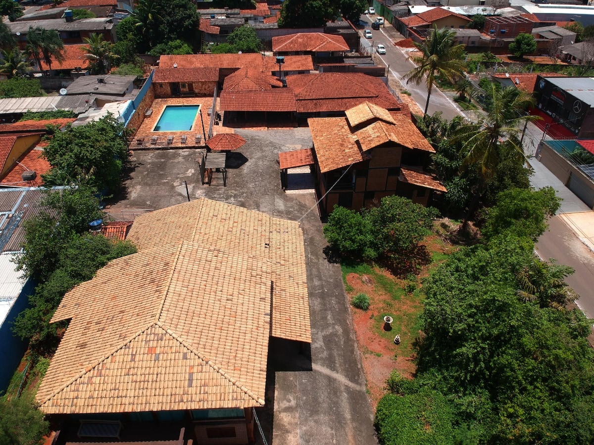 Chácara dentro de Goiânia para hospedagem com conforto , segurança e privacidade . Piscina , Churrasqueira , Chalé com 02 Quartos e sala mais 01 Banheiro. Para que ficar num apartamento ,se vc pode ter uma chácara todinha para vc , seus amigos e familiares aproveitarem ao máximo a estadia em Goiânia. Pertinho do novo Shopping Passeio das Águas.