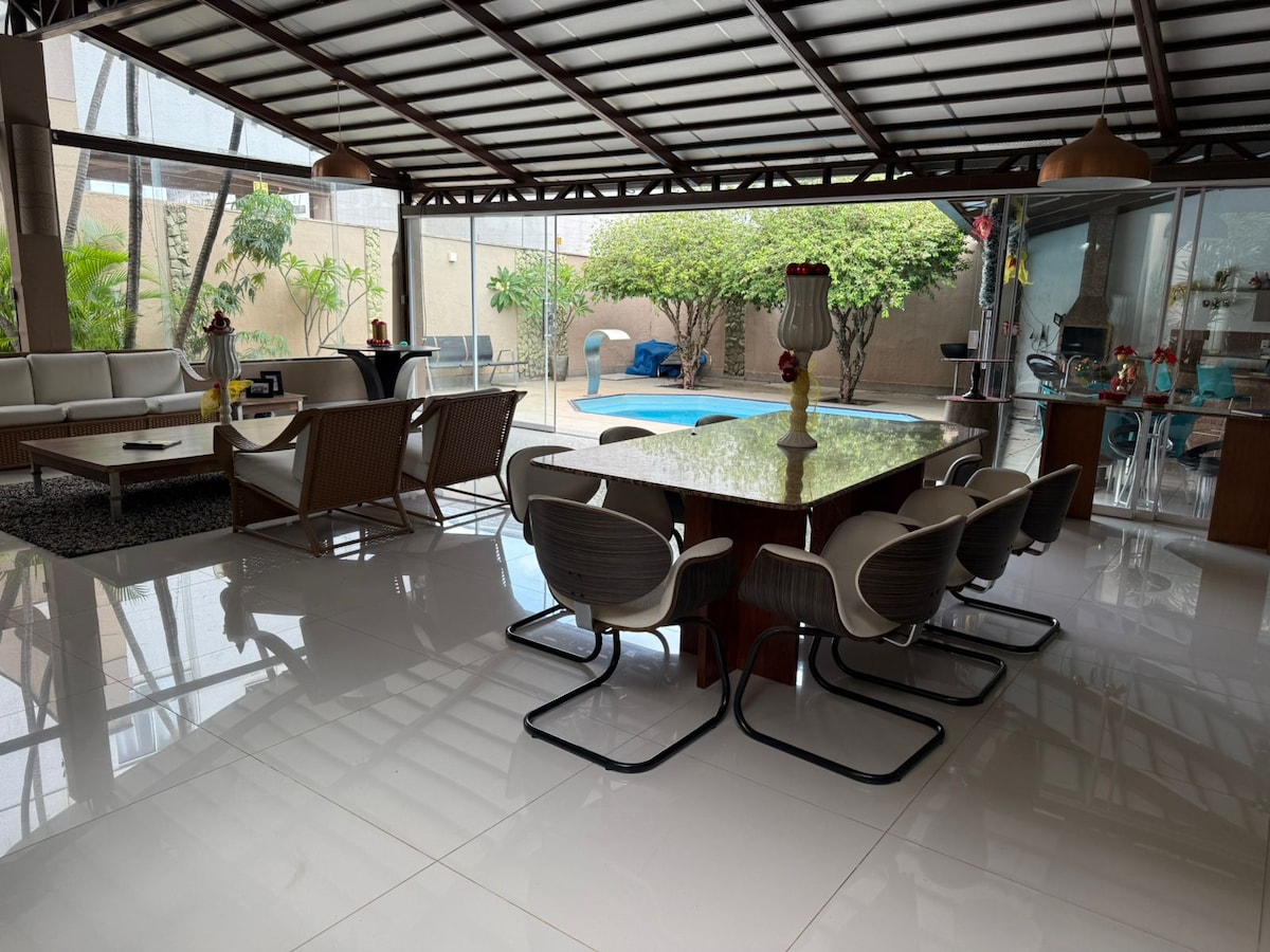 Esta acomodação elegante é perfeita para viagens em grupo. Fica em local bem localizado a 5 minutos do maior shopping de Goiânia Flamboyant também Estádio Serra Dourada, Autódromo e dos condomínios mais nobres de Goiânia e bem aconchegante e você terá uma vista maravilhosa podendo usufruir de vários ambientes da casa que tem um charme em cada horário diferente você não vai se arrepender vai ser surpreender.