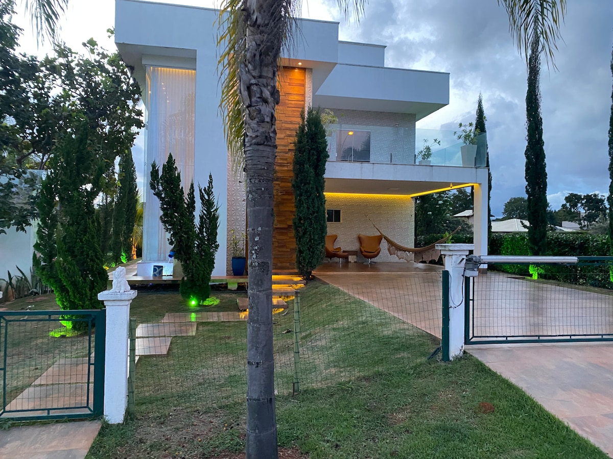 Esta acomodação elegante é perfeita para viagens em grupo. Fica em local bem localizado a 5 minutos do maior shopping de Goiânia Flamboyant também Estádio Serra Dourada, Autódromo e dos condomínios mais nobres de Goiânia e bem aconchegante e você terá uma vista maravilhosa podendo usufruir de vários ambientes da casa que tem um charme em cada horário diferente você não vai se arrepender vai ser surpreender.