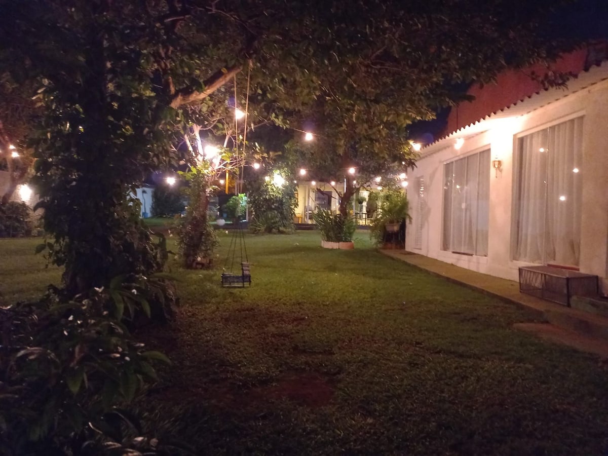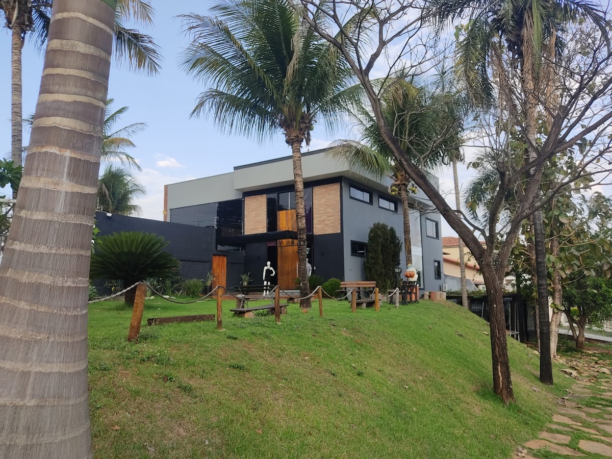 Bem-vindo à nossa deslumbrante Chácara Casa Blanca na saída GO 020, onde o encanto da natureza encontra o conforto de um ambiente familiar! Imagine-se cercado por uma exuberante área verde, onde o frescor da vegetação e a tranquilidade do ambiente proporcionam momentos inesquecíveis para você, sua família e amigos. Com um total de 6 qts, sendo 5 suítes, garantimos acomodações espaçosas e aconchegantes para todos os hóspedes. A casa foi reformada JUNHO 2023 para melhor recebe-los.