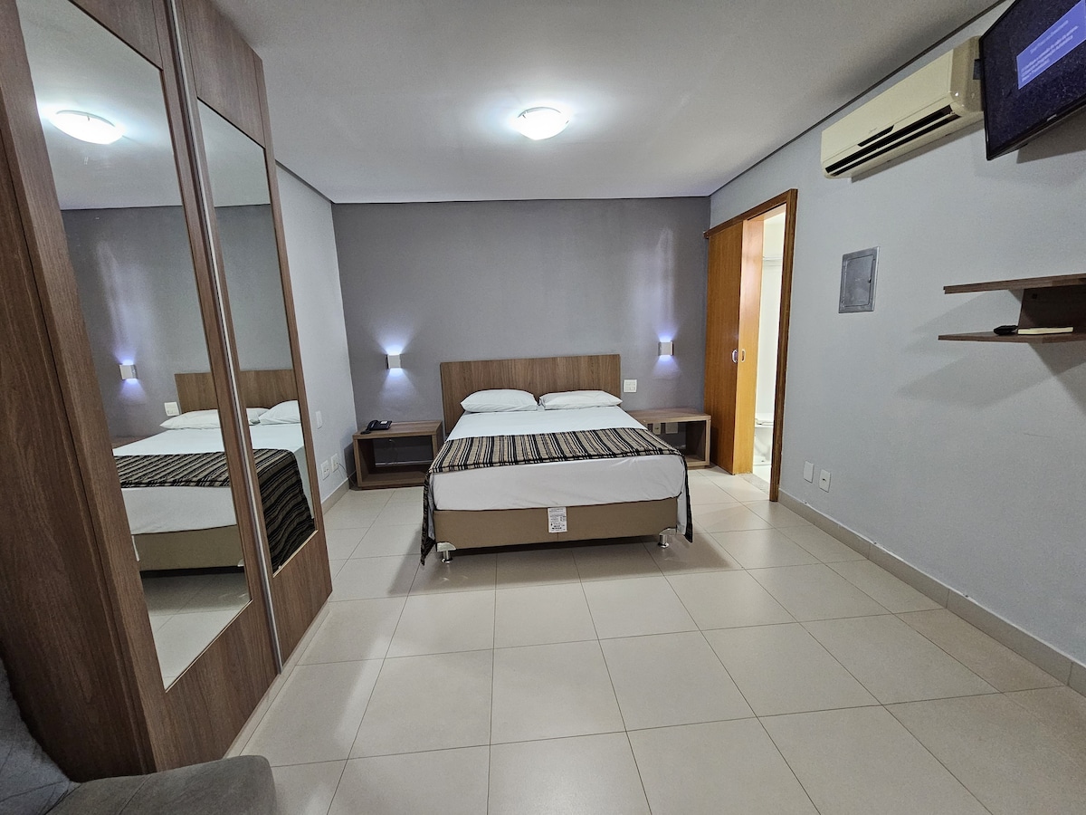 Suíte de 20m² aconchegante, rica em armários, com espaço home office, frigobar e micro-ondas. Serviço de camareira incluso. Hotel com piscina, academia, sauna e restaurante. Tudo para você relaxar com comodidade e tranquilidade. 📍Localização privilegiada. Av. República do Líbano, 2526 – St. Oeste. Região nobre, com fácil acesso aos principais pontos da cidade. Conforto, praticidade e sofisticação para sua estadia em Goiânia.