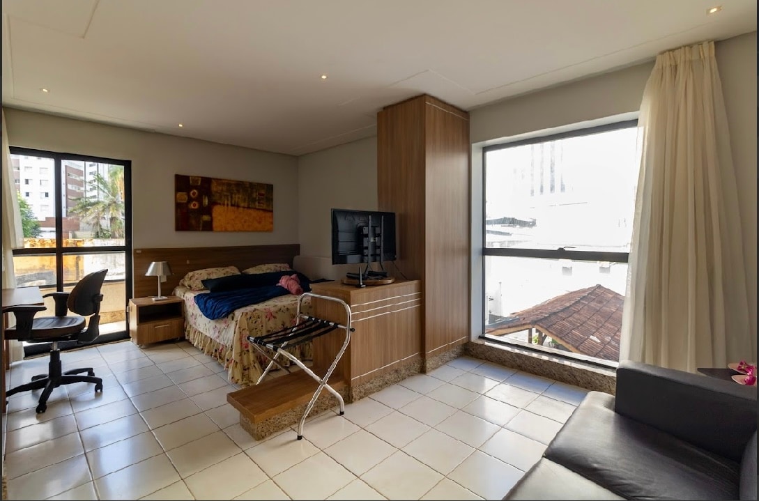 Tudo o que você quer explorar está a um passo deste lugar. Bairro Nobre, recepção 24 horas, estacionamento 24 horas com manobrista GRÁTIS, picina, academia, loja de conveniência dentro do Hotel. Próximo de bares e restaurantes. Flat com Suíte e sala com cozinha Americana. Acomoda até 04 Pessoas