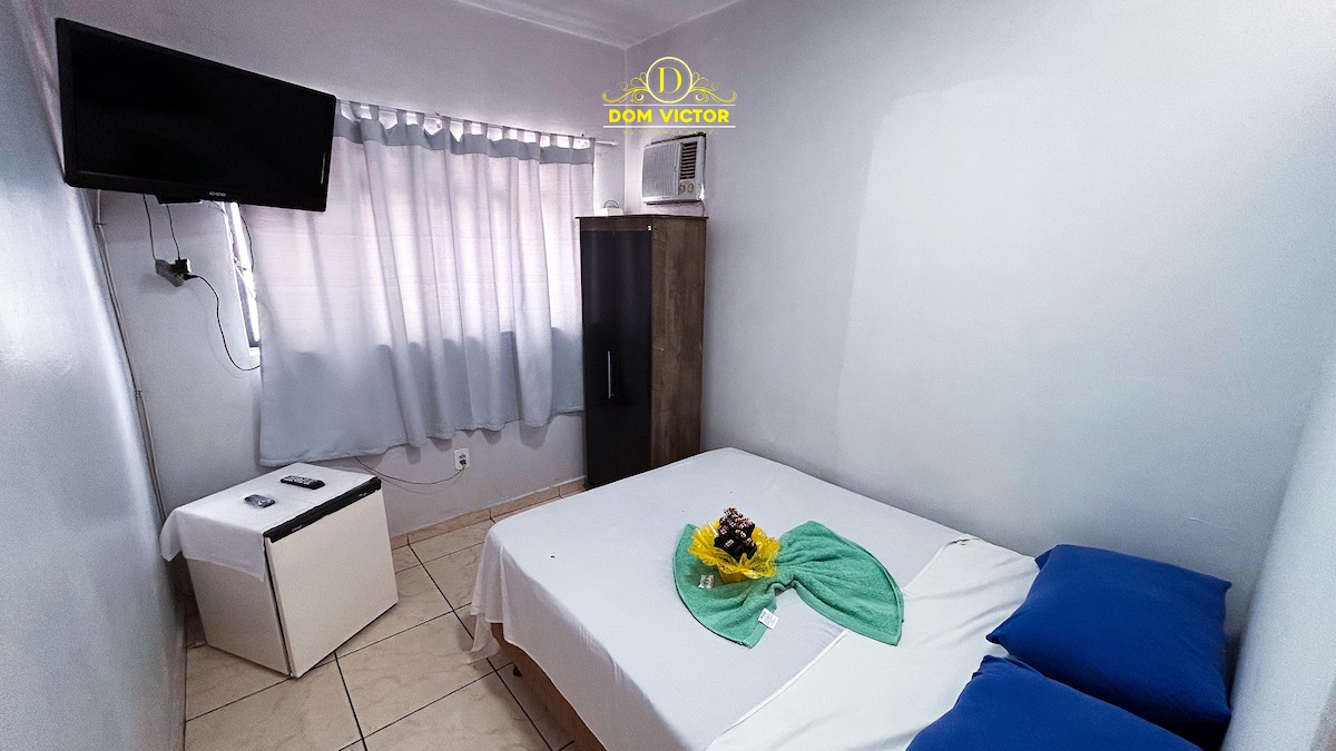 Excelente quarto de hotel em bairro centralizado em Goiânia, próximo a região da 44 - polo da moda, universidades, terminal rodoviário, hospitais, órgãos públicos, mercados, bares e restaurantes. O quarto possui banheiro privativo, ar condicionado, chuveiro, ducha higiênica, secador de cabelo, bancada de trabalho, frigobar, armário, cabides. Oferecemos enxoval completo: lençóis, travesseiros, cobertores, toalhas. Cortesia de café da manhã, estacionamento, wi-fi, amenides.