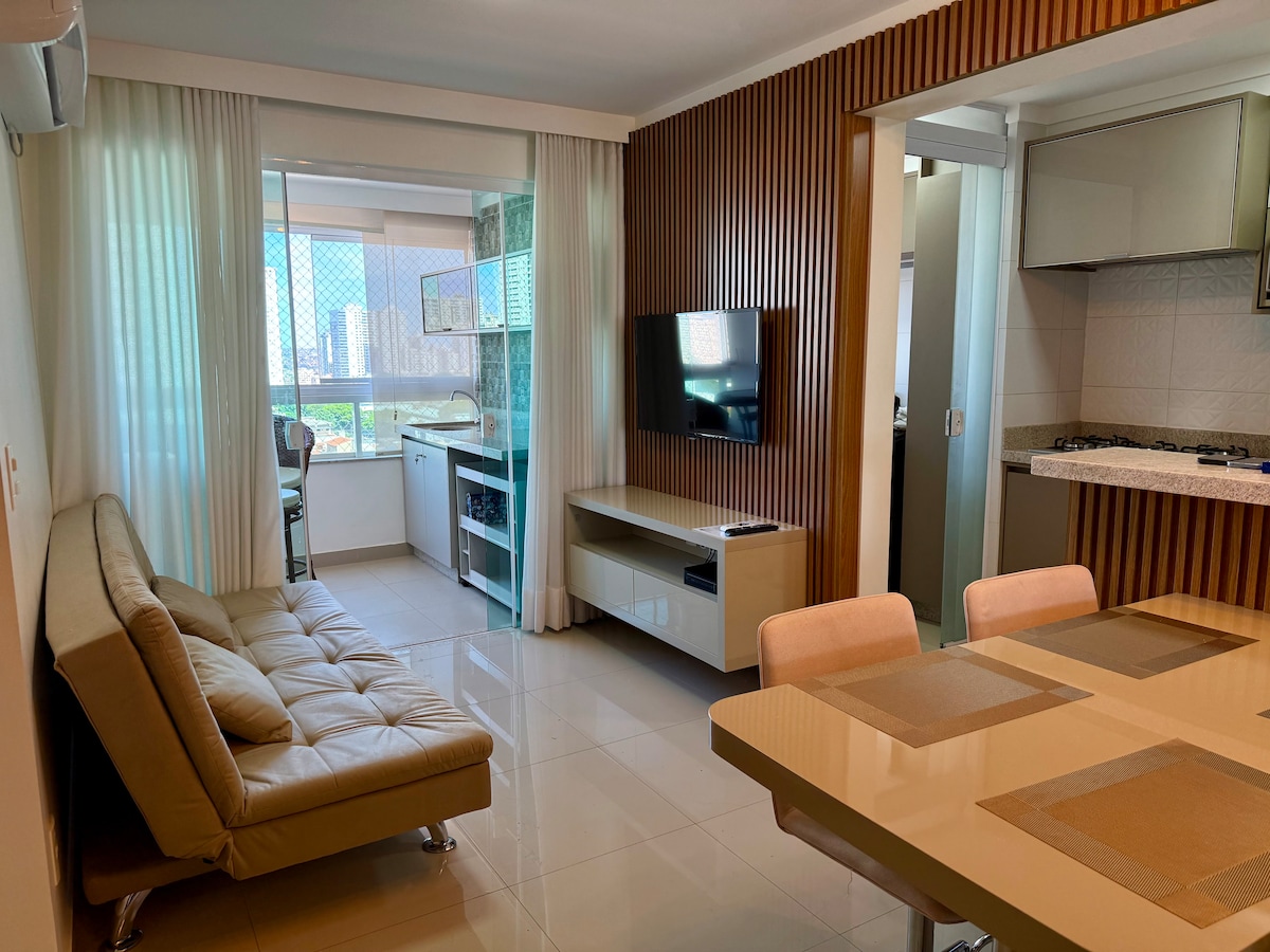 Prezamos pelos detalhes, todos os nossos apartamentos são cuidadosamente inspecionados antes da entrega aos hóspedes. Único e estiloso, com marcenaria toda planejada, localizado em uma das melhores regiões da cidade, o Jardim Goiás. Próximo ao Shopping Flamboyant, Estádio Serra Dourada, Centro Cultural Oscar Niemeyer, além de padarias, bares, restaurantes, farmácias, comércios e parques. Aproveite o melhor que a cidade tem a oferecer em um ambiente elegante e confortável.