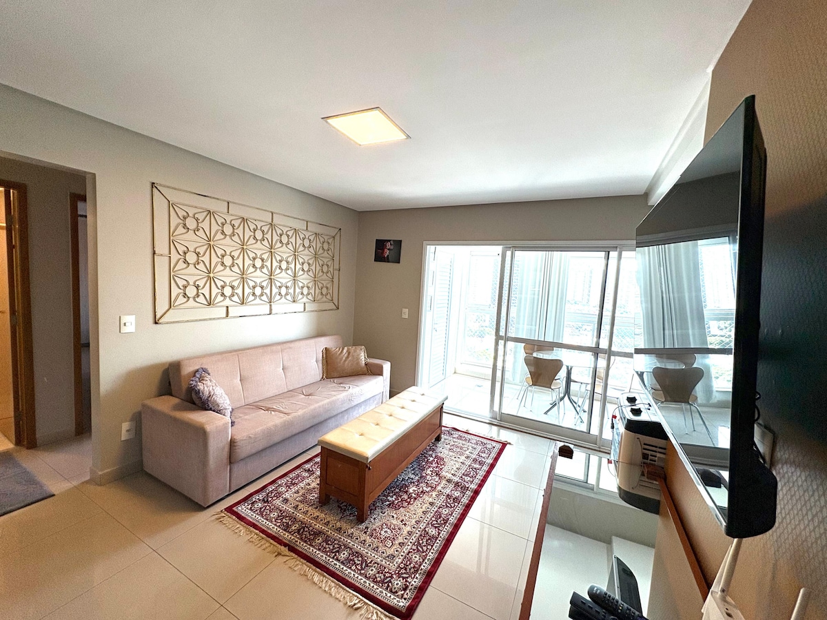 Apartamento de 1 quarto no 25° andar, super confortável, localizado no parque flamboyant, região mais nobre de Goiânia. Com Netflix logado, WiFi, Tv e ar-condicionado na sala e no quarto, mesa de escritório, microondas, forno, sanduicheira, cooktop, bebedor, geladeira, adega, cafeteira, maquina de lavar, secador de cabelo, varal retrátil, sacada com bistrô, churrasqueira e a vista mais linda de Goiânia.