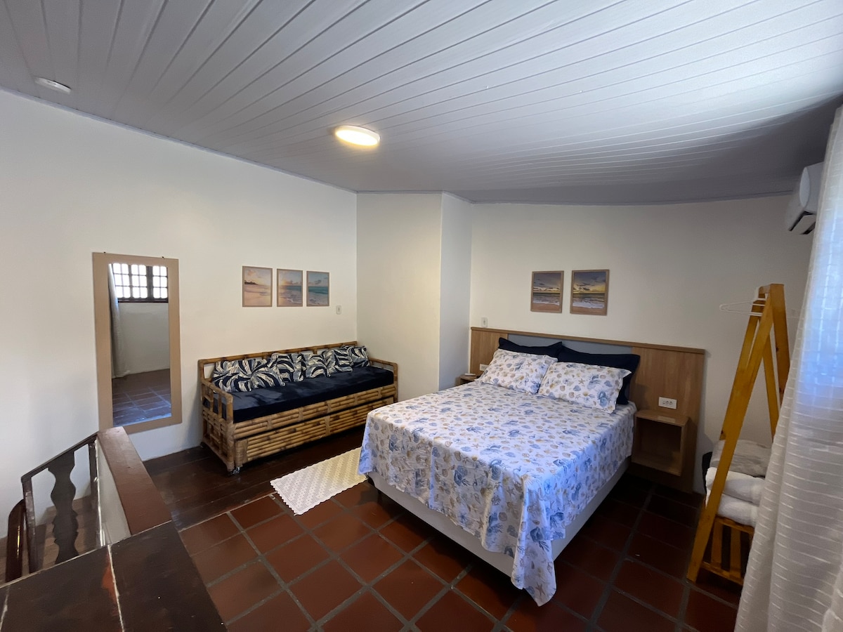 Experience the charm of our independent loft, on the 3rd floor of a beachfront triplex house. Double bedroom with air conditioning, fully equipped kitchen, and two spacious living rooms with sofa beds and a hammock. Covered barbecue area with city views. A cozy and convenient stay, just steps away from the dunes and Forte Beach.