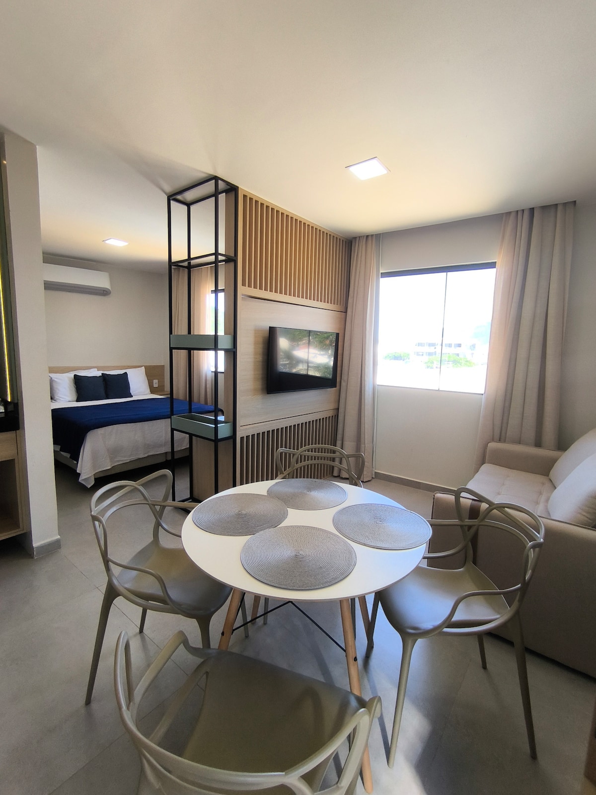Permita-se acordar com o som das ondas nesse paraíso de aguas azuis. Um espaço moderno e totalmente reformado e equipado pensando no seu conforto e bem estar, com uma vista paradisíaca para o mar azul do Caribe Brasileiro - Cozinha equipada com peq. fogão, micro-ondas, Air-fryer, sanduicheira, cafeteira, geladeira e todos os utensílios. - Roupa de cama e banho de padrão hoteleiro - Secador de cabelos - Estacionamento sob demanda (não ha vagas para todos os aptos)