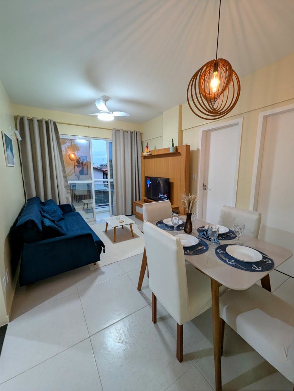 Lindo apartamento no primeiro andar, Wi-Fi, dois quartos com ar condicionado (uma suíte) com vaga coberta para um carro. Condomínio disponibiliza churrasqueira com agendamento prévio e com taxa de utilização diária a ser acordada dependendo da época do ano. Hermoso apt en el primero piso, Wi-Fi, dos habitaciones con aire acond. (una suite) con vacante para un coche.