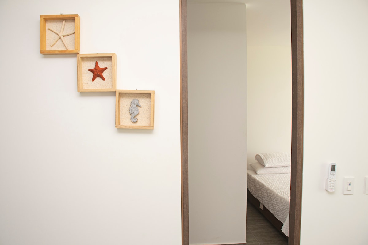 Disfruta de un acogedor apartamento tipo loft en Cartagena de Indias, ubicado en el exclusivo sector de Cielo Mar. Ideal para cuatro personas, está a solo cinco minutos del aeropuerto y a diez del Centro Histórico. Cuenta con menaje completo y todo lo necesario para una estadía cómoda, además de supermercados y farmacias muy cerca. A solo 50 metros encontrarás las mejores playas. Vive la magia de Cartagena y siéntete como en casa en nuestro apartamento.