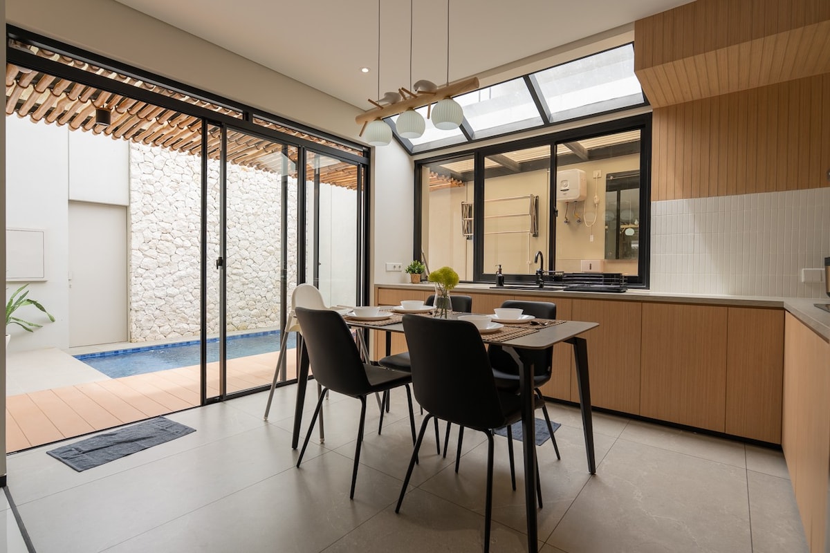 Have fun with the whole family at our stylish place. It’s a heated natural water from the hill (not a hot spring). Open from the living room, your children will love playing in this hot tub 💙 1. TIDAK available untuk pasangan yang BELUM menikah. 2. Setelah jam 10 malam kurangi volume suara dikarenakan area pemukiman. 3. Jam operasional Air Panas di kolam dari jam 6 pagi - 10 malam. 4. NO ALCOHOL, DRUGS, PORN & PARTY. 5. Security patroli 24 jam.