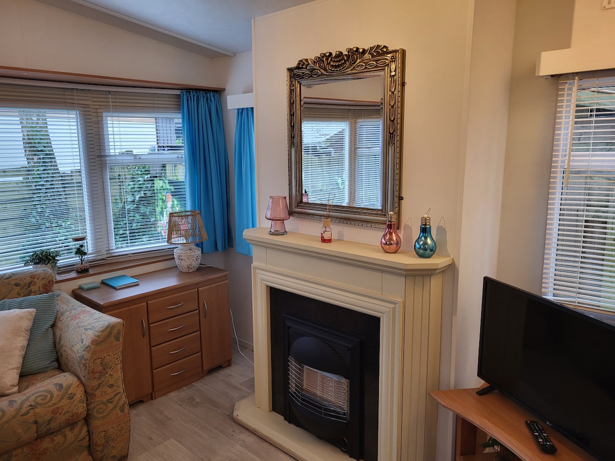 Licht, ruimte en luxe staan centraal in dit chalet met vlonder aan het water. Een toplocatie met tuin op het ZW omgeven door groen en vlakbij alle parkfaciliteiten. Woonkamer met luxe meubelen, elektrische haard en TV, compleet ingerichte keuken , twee slaapkamers, waarvan één met openslaande deuren en TV, separate WC en luxe badkamer met regendouche. Uniek: Alle ramen zijn met horren uitgerust. Tuin met eetgelegenheid en lounge set. LET OP: Excl. Beddengoed + handdoeken(bij te boeken p.p)