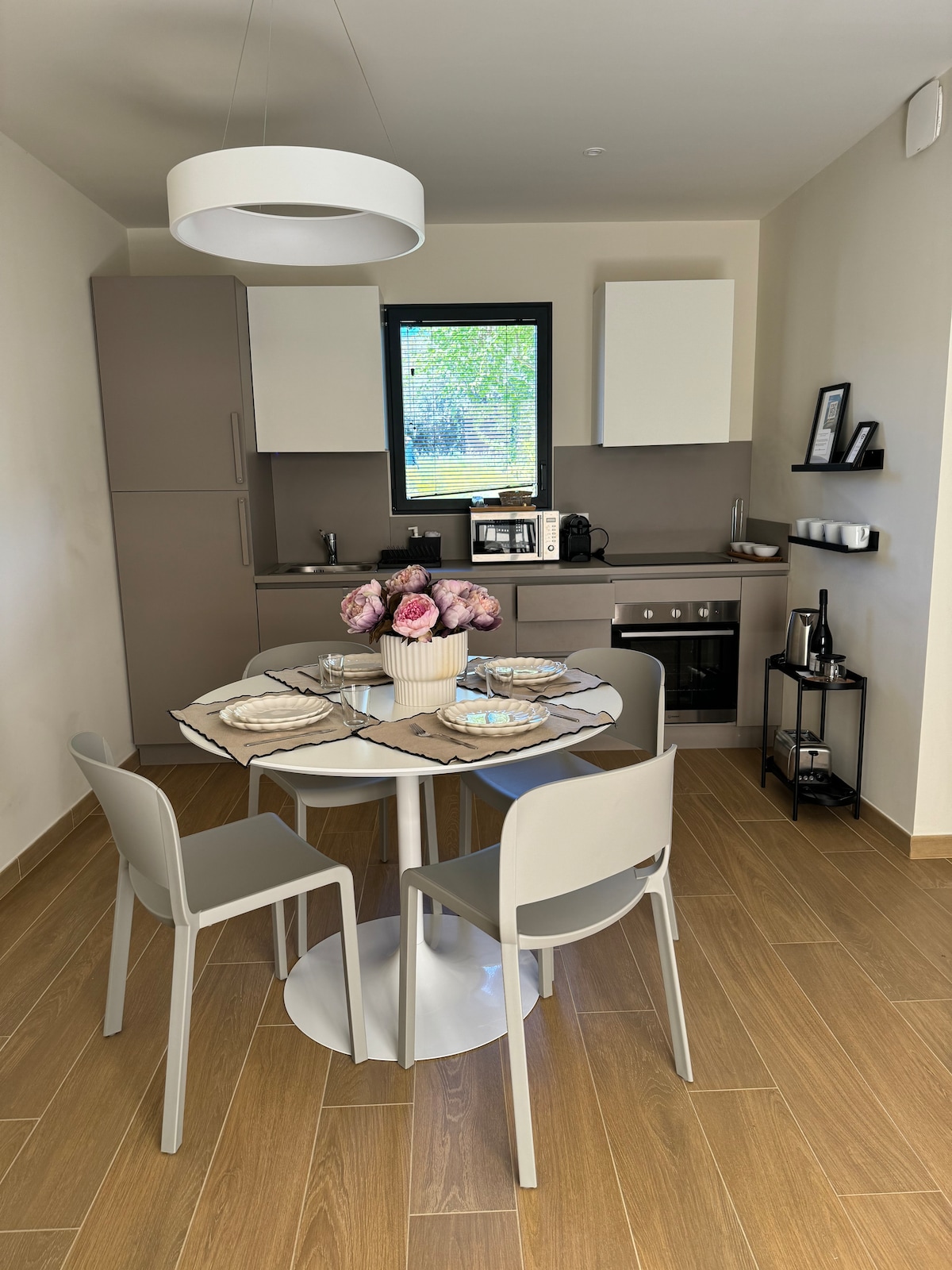 Profitez d'un logement élégant et central. L'appartements dispose d'une chambre avec lit double, d'un salon avec canapé double literie de luxe. Balcon ou d'une terrasse. Vous trouverez des équipements modernes : cuisine entièrement aménagée, climatisation, Smart TV, Wifi, serviettes, draps Parking privé et bornes de recharge électriques à votre disposition. Située en plein cœur des vignes est idéalement placé: commerces, restaurants, plages, supermarchés sont accessibles (8min à pied).