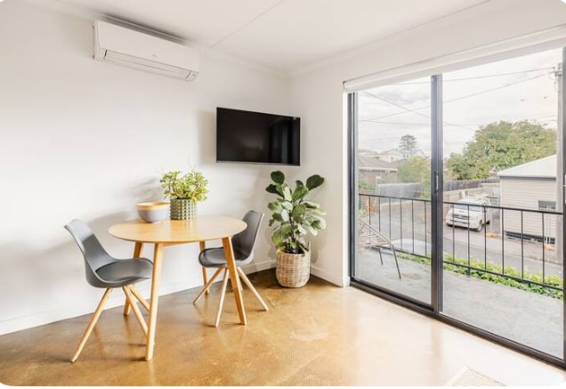 Our brand new purpose built apartment is bright and light with stylish fittings and comfortable decor. Featuring a large queen bedroom and adjoining bathroom, well-appointed kitchen and living area, plus private balcony with BBQ overlooking the rear garden. TV Foxtel, heating and cooling in both rooms. There is a separate access to the apartment for all our guests. Our place is centrally located in town and only a 2 minute walk to the main shops, cafes, hotel, Anglesea river and parklands.