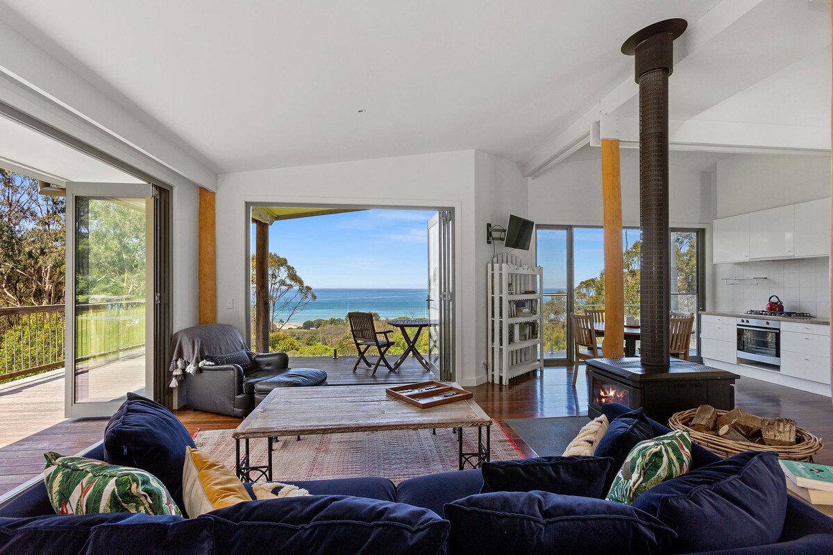 A coastal retreat for discerning couples who enjoy absolute luxury. This Contemporary Architectural House at Skenes Creek (18.00 squares) has: * Extensive indoor/outdoor entertaining and living areas. * Breathtaking views overlooking Skenes beach * Netflix, Stan, Spotify on LG 50" TV. * Daikin Multi head reverse cycle Air Con. * 6 jet spa bath in main bedroom en suite. * "WeberQ" BBQ on the balcony * Huge deck area. * A selection of DVD's. * Nespresso coffee machine and coffee