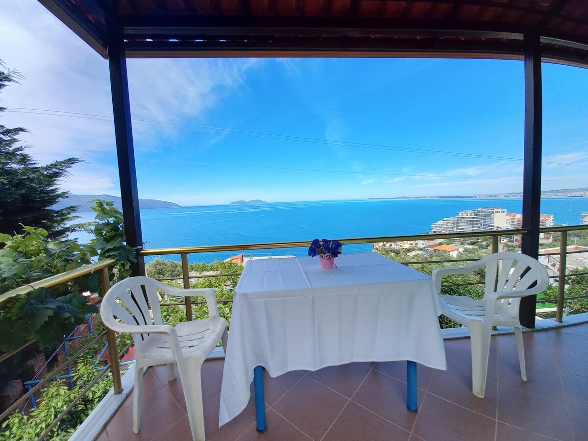 🏡 Hilltop Studio with beautiful Sea Views** Escape to our charming studio near "Uji i Ftohte" in Lungomare. Enjoy a fully equipped kitchen, modern bathroom, cozy sleeping area, and a spacious balcony with sea views. 📍 Perfect Location Beaches, cafes, markets, and restaurants are 5-15 mins away. The bus stop (4 mins) connects you to Vlora’s city center for 40 cents. Hassle-free self-check-in/out. ✨ Your perfect getaway awaits!