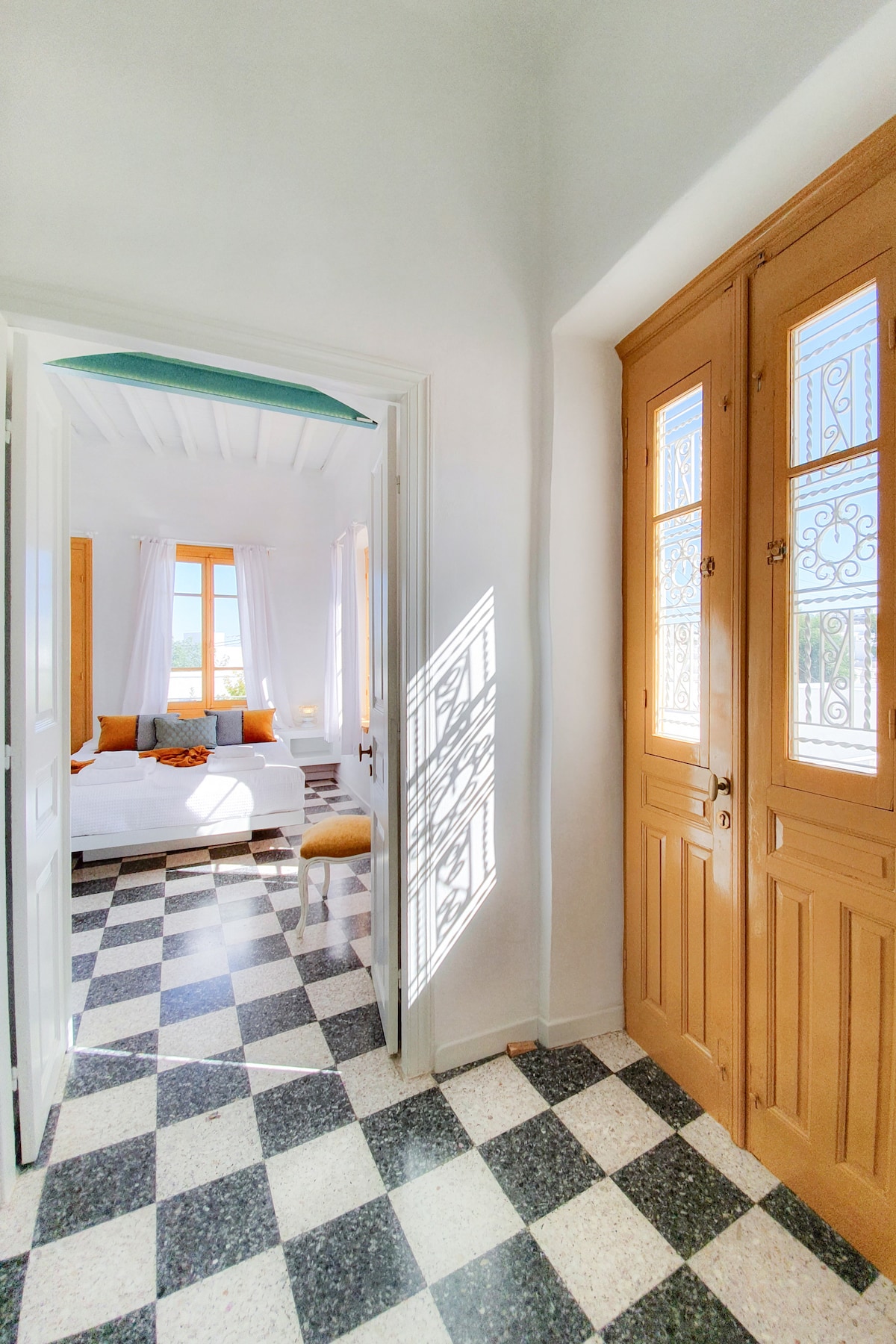 Authentic and stylish Cycladic house in the heart of Apollonia, featuring a private terrace and rooftop space perfect for relaxing evenings after exploring the village. The upper independent apartment of this 1900 restored villa, boasts two double bedrooms, one with ensuite bathroom and a second bathroom, a perfectly equipped and stylish kitchen, a small living room and an astonishing veranda for wine, cocktails and amazing dinners.