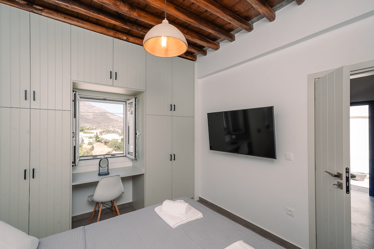 Παραδοσιακό διώροφο σπίτι που βρίσκετε στην είσοδο του κεντρικού οικισμού της Απολλωνίας. Είναι κατάλληλο για ζευγάρια αλλά και για οικογένειες. Διαθέτει ένα υπνοδωμάτιο στον κάτω όροφο με ένα διπλό κρεβάτι και ένα καναπέ- κρεβάτι στον πάνω όροφο στο χώρο της κουζινοτραπεζαρίας. Στην Απολλωνία, βρίσκουμε τράπεζες, αστυνομικό σταθμό, ιατρείο, ταχυδρομείο, το Δημαρχείο του νησιού, φαρμακεία, μπαρ και εστιατόρια. Πρόσβαση σε όλα σχεδόν τα μονοπάτια του νησιού καθώς έχουν σύνδεση με την Απολλωνία.