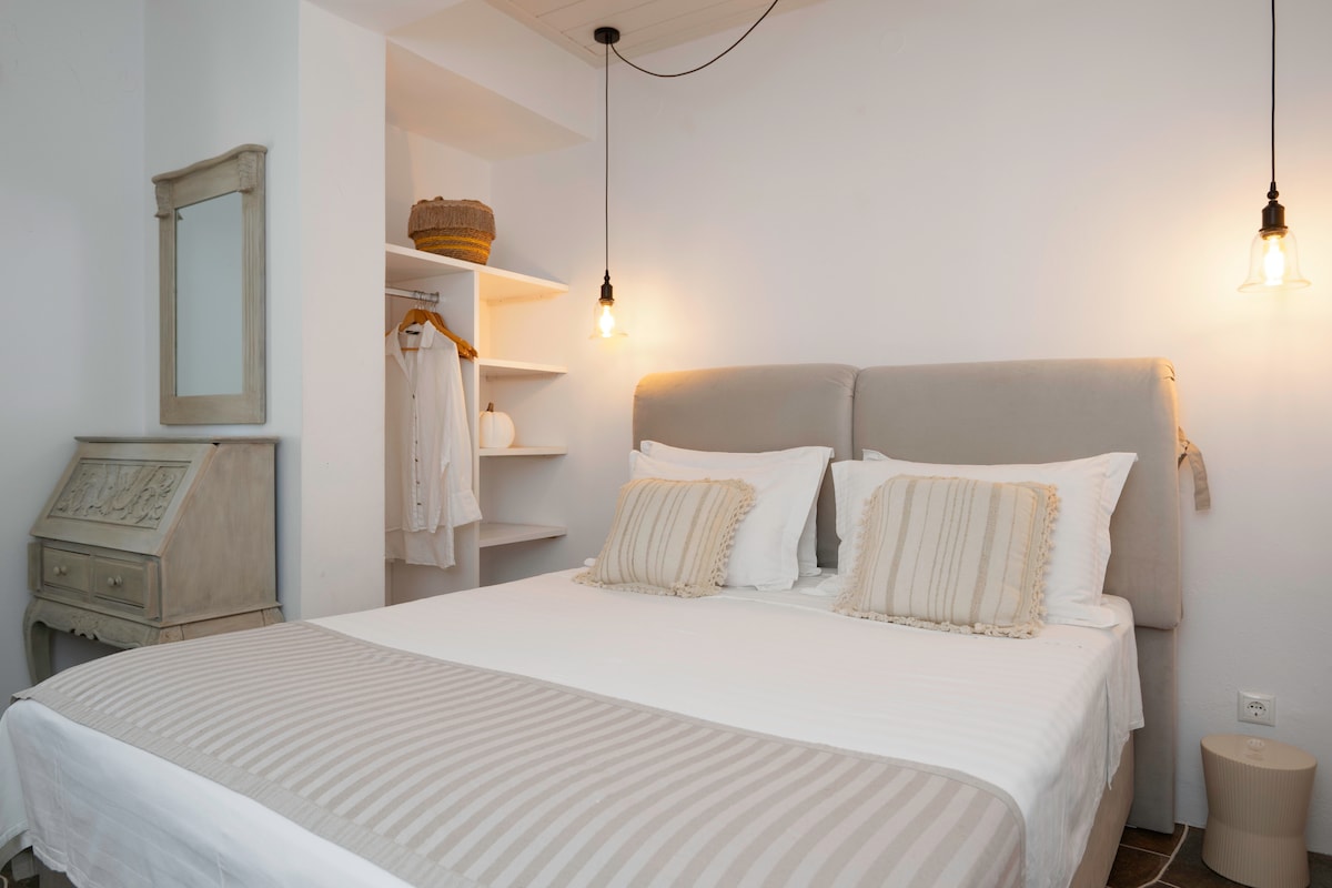 Welcome to Kisari Kimolos Chorio Double Room, your serene retreat in the heart of Chorio, Kimolos. Nestled just a few steps from the village center and close to the convenient free public parking, our recently renovated double room offers a blend of traditional Cycladic charm and contemporary comfort. Wake up with a view of the traditional village, Polyaigos and the endless blue sky from the courtyard, fully furnished to enjoy moments of relaxation or a drink. It can accommodate up to 2 persons.