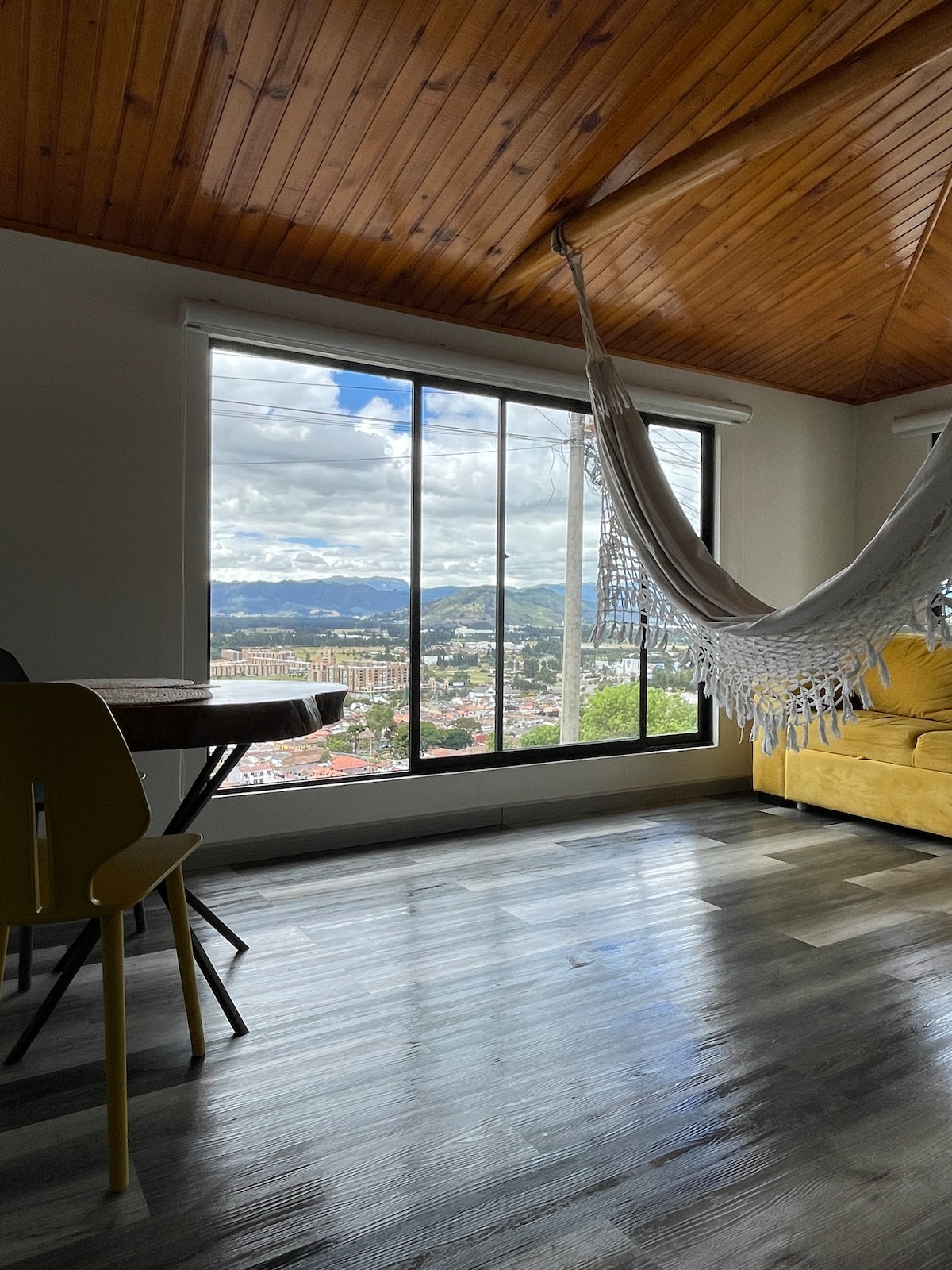 Cabaña ubicada en las montañas del Resguardo Indígena de Chía, Cund. Conexión con la naturaleza, vista al municipio y a las montañas, ideal para desconectarse de la ciudad y tener un momento de tranquilidad. Cerca de Bogotá, a 15min del centro de Chía y 10min de Andrés Carne de Res, llegada de fácil acceso. Cerca hay lugares para montar en bicicleta o caminar al cerro de la valvanera. Se puede llegar en transporte público, uber o taxi sin problema, toda la vía está pavimentada.