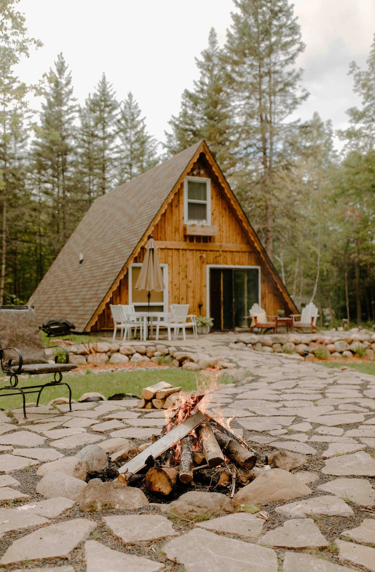 A peaceful, feel good place. Renovated rustic modern A-frame on Lake Superior's scenic south shore. Surrounded by evergreen and birch trees in an idyllic woodland setting. Enjoy walks to the beach, breathtaking sunsets and beach bonfires, kayaking the famous seacaves, biking, hiking to waterfalls, shopping for vintage treasures or just relaxing/stargazing in the beautiful private backyard. A perfect home base for exploring the Apostle islands, Bayfield and Madeline Island.