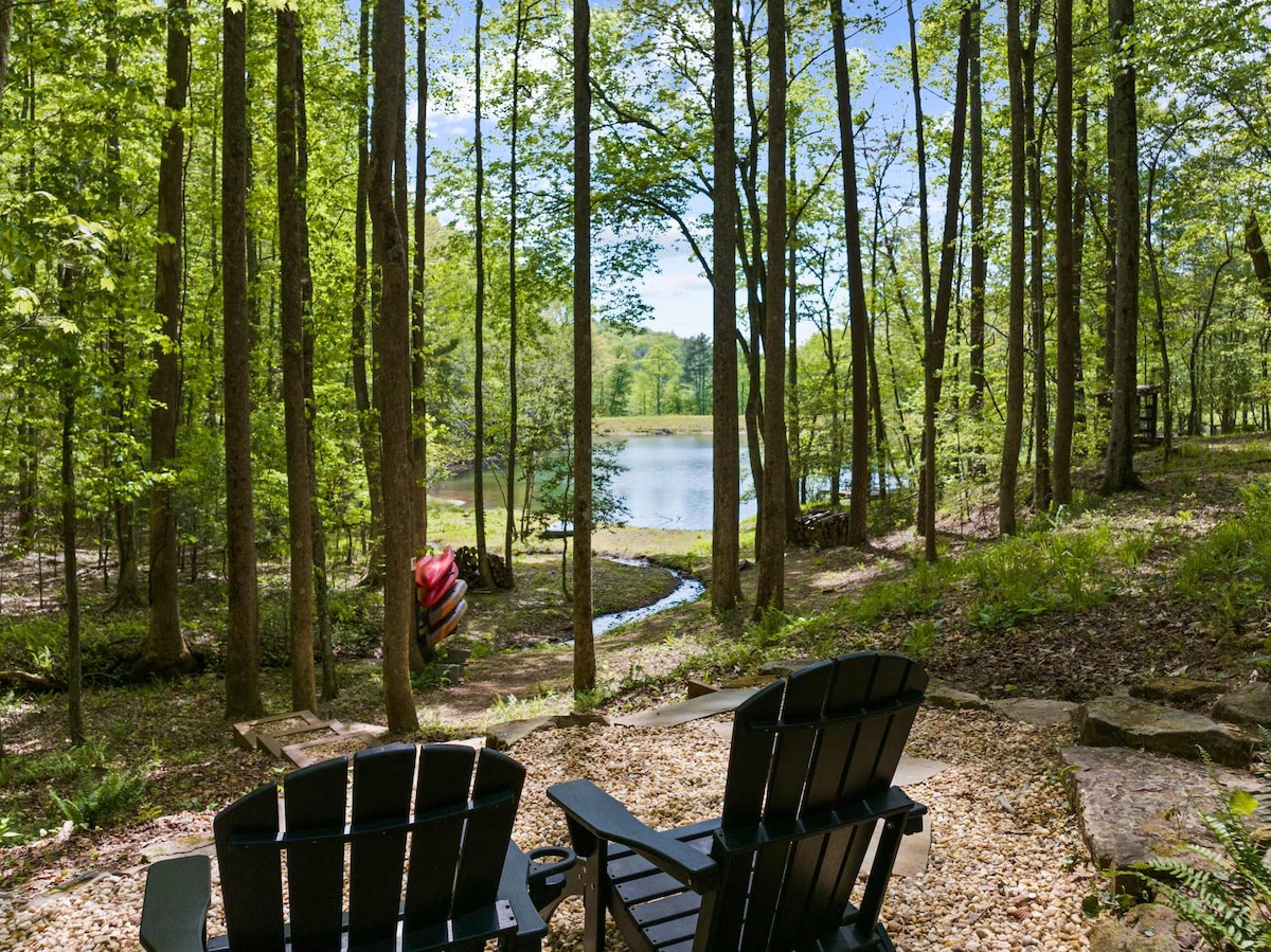 Dragonfly Treehouse: A Romantic Getaway in Dahlonega, GA Escape to the serene beauty of Dahlonega, GA, and experience the magic of The Dragonfly Treehouse—your perfect romantic retreat. Nestled among the trees, high above your own private pond. This luxurious hideaway offers everything you need for an unforgettable stay. Movie Theater, Hot Tub, Sauna, Nespresso, Soaking Tub, Luxury Shower, Heated Bathroom Floors, Towel Warmer, Put Green, Fire Pit, Outdoor Cabana Retreat w/TV and Floating Bed.