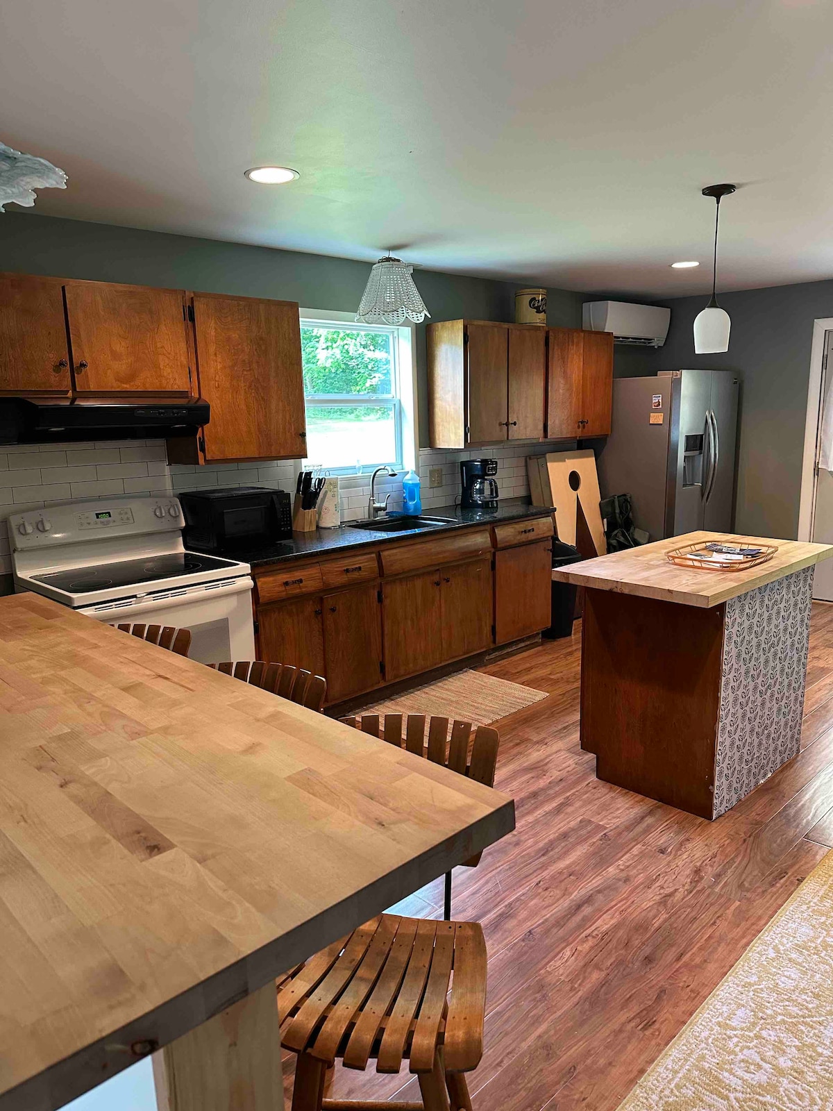 Modern Scandinavia-style riverfront bungalow on 8 acres. Sit on your deck with twinkle lights for coffee/dinner filled w sounds & views of a rushing river; walk across the river into your own private swimming spot! Perfect for a nature retreat, hiking, swimming, fishing (stocked every April), skiing, work w mountain views or write that novel you have always wanted to finish. 2 hrs from the George Washington Bridge. Level 2 EV charger. Hate has no home here-all are welcome.